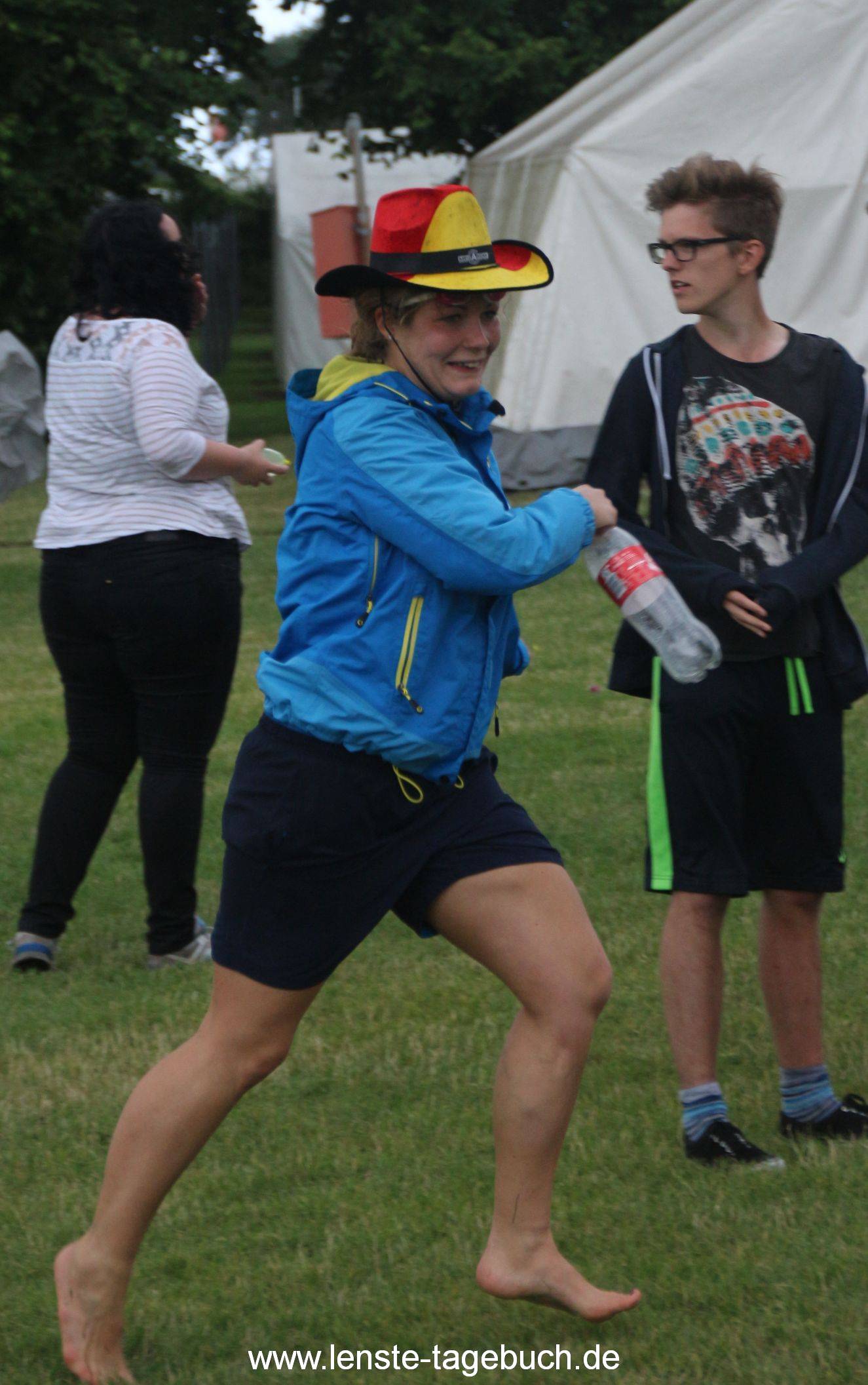 Stimmung: Was ist schon ein bißchen Regen, wenn wir im coolsten Zeltlager der Welt ist?
