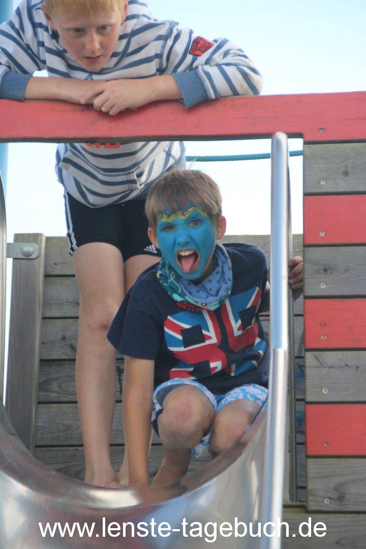Und wieder ein Tag mit Sonnenschein, schließlich sind wir hier ja auch im Sommerurlaub – auch wenn es nicht ganz so warm ist. Aber das macht nichts – wir können uns auch mit Basteln, Völkerball und SingStar „warmspielen“:-)