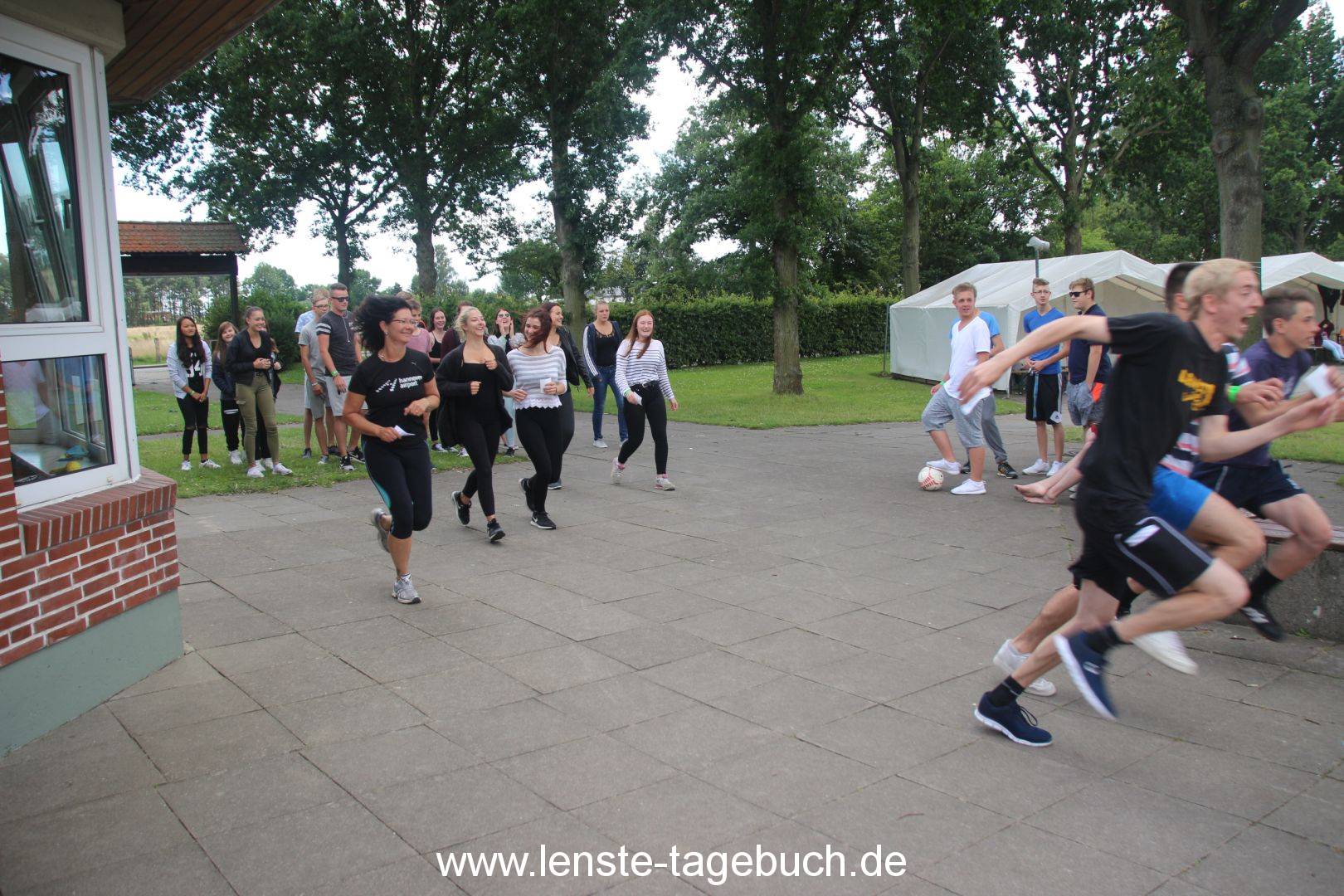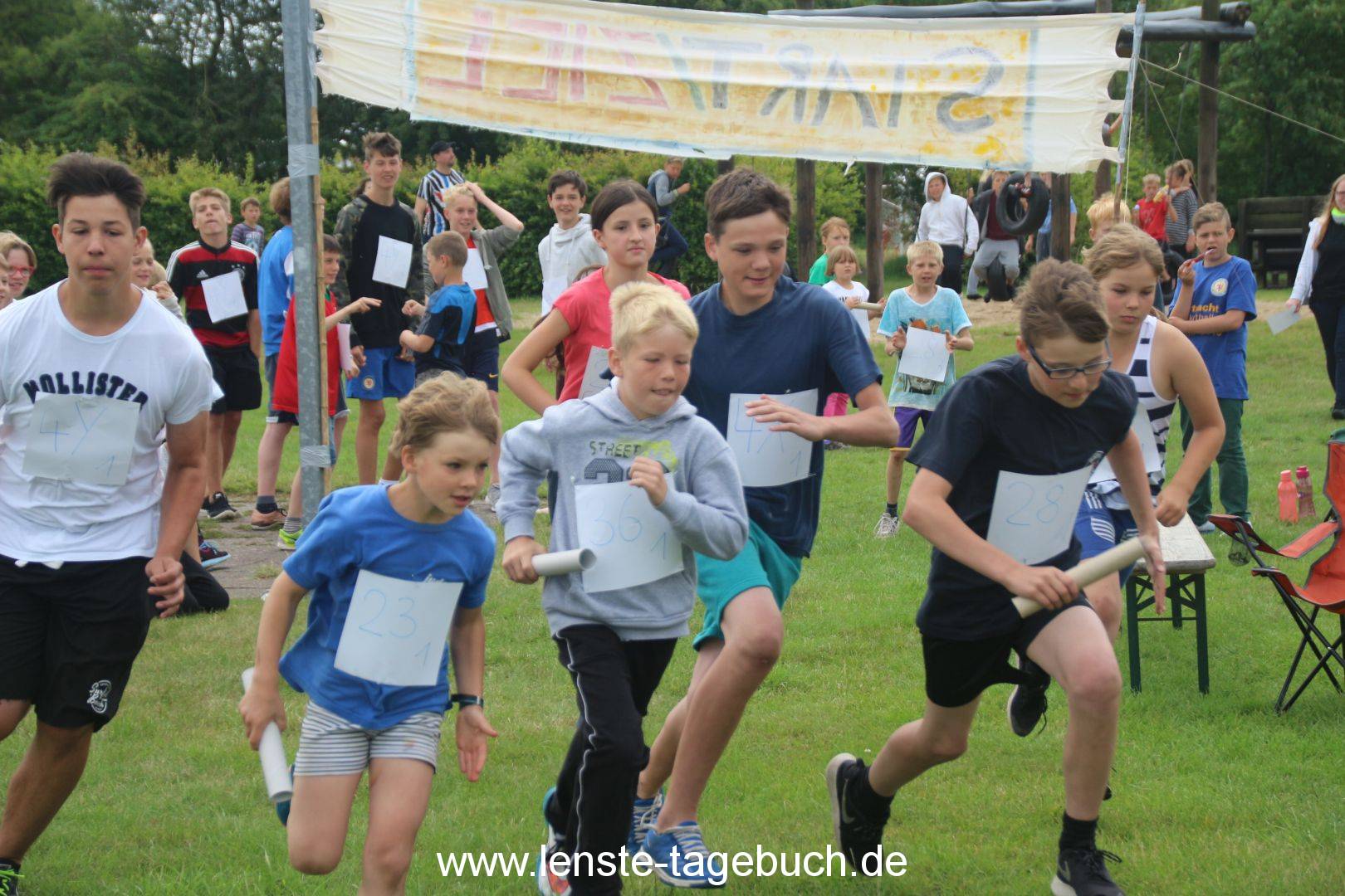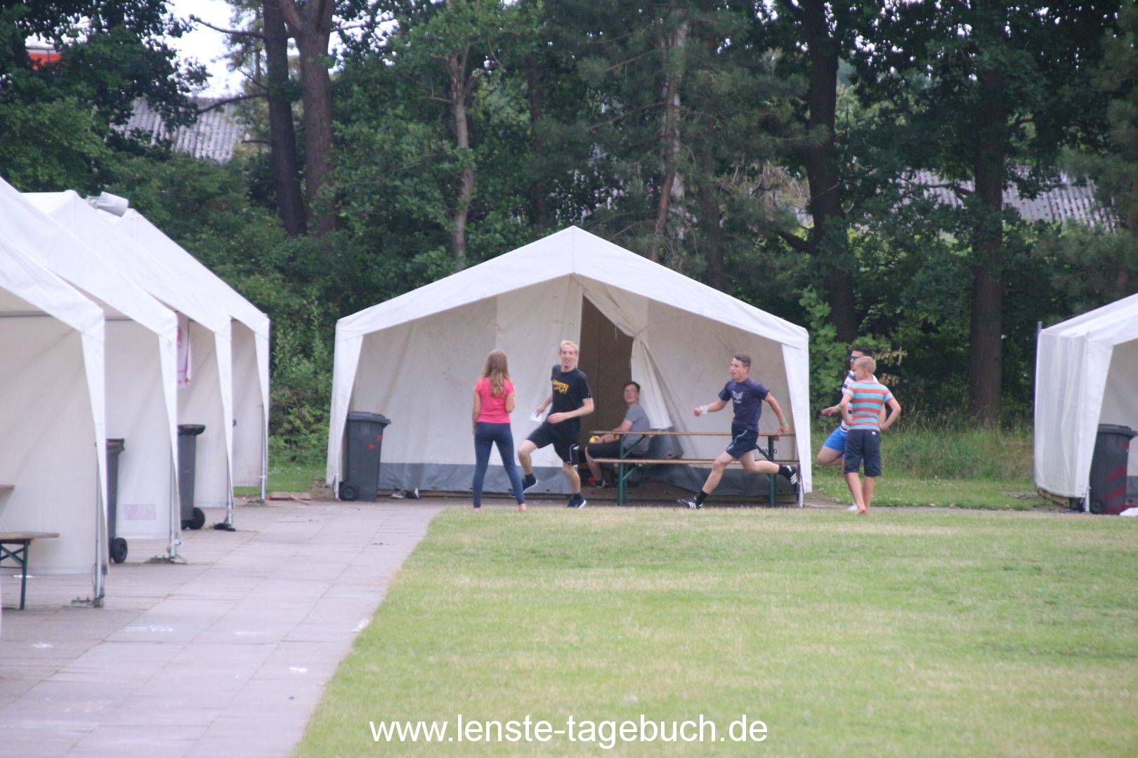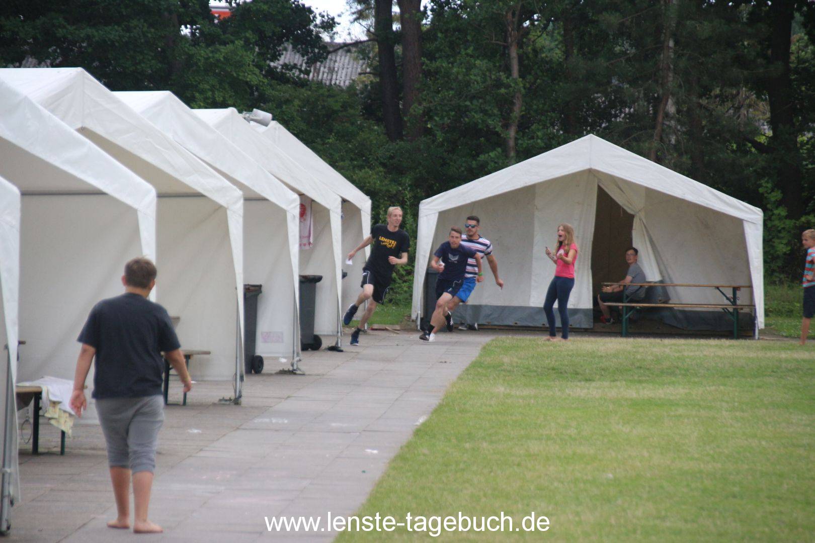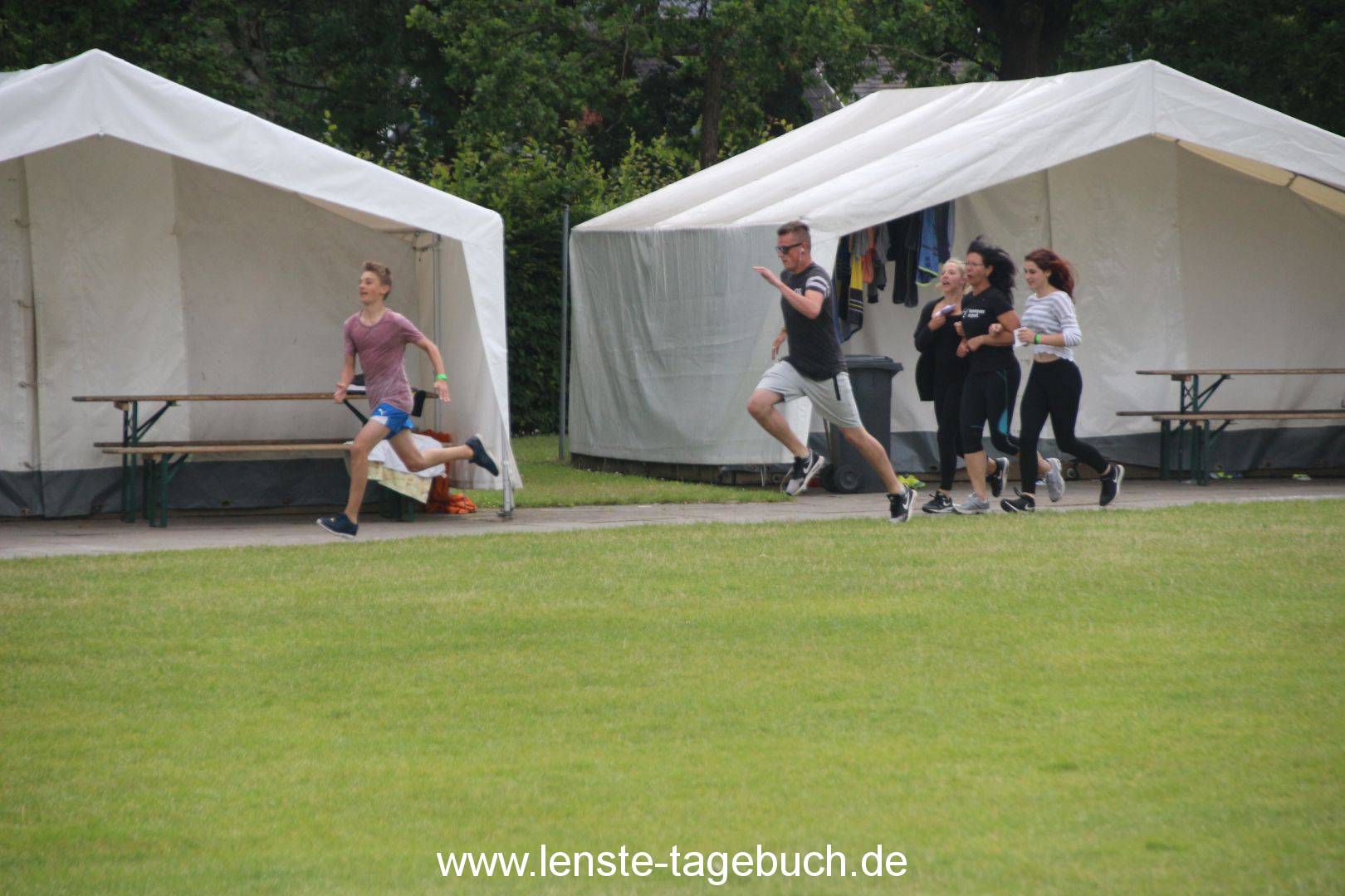 Der Nachmittag beginnt mit einem weiteren Staffellauf – diesmal von den Ü16 – rund um den großen Zeltplatz. Wobei… eigentlich laufen sie nur zwischen den Zelten.: