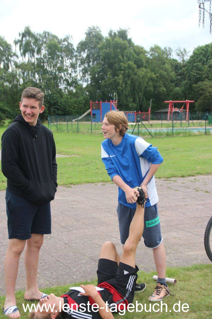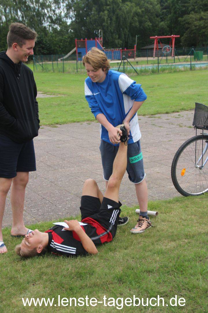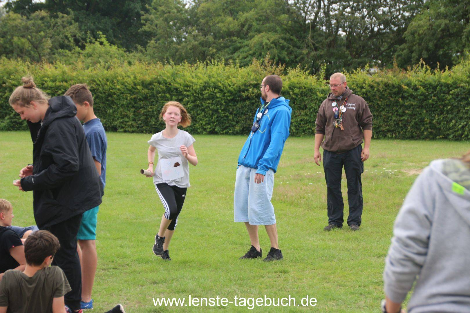Der Nachmittag beginnt mit einem weiteren Staffellauf – diesmal von den Ü16 – rund um den großen Zeltplatz. Wobei… eigentlich laufen sie nur zwischen den Zelten.: