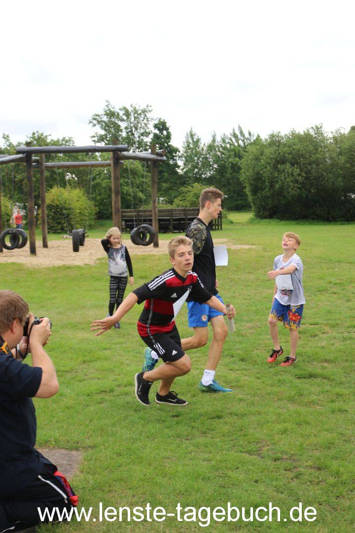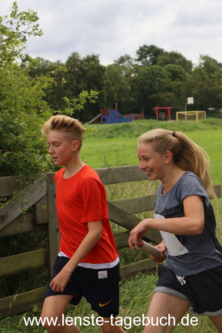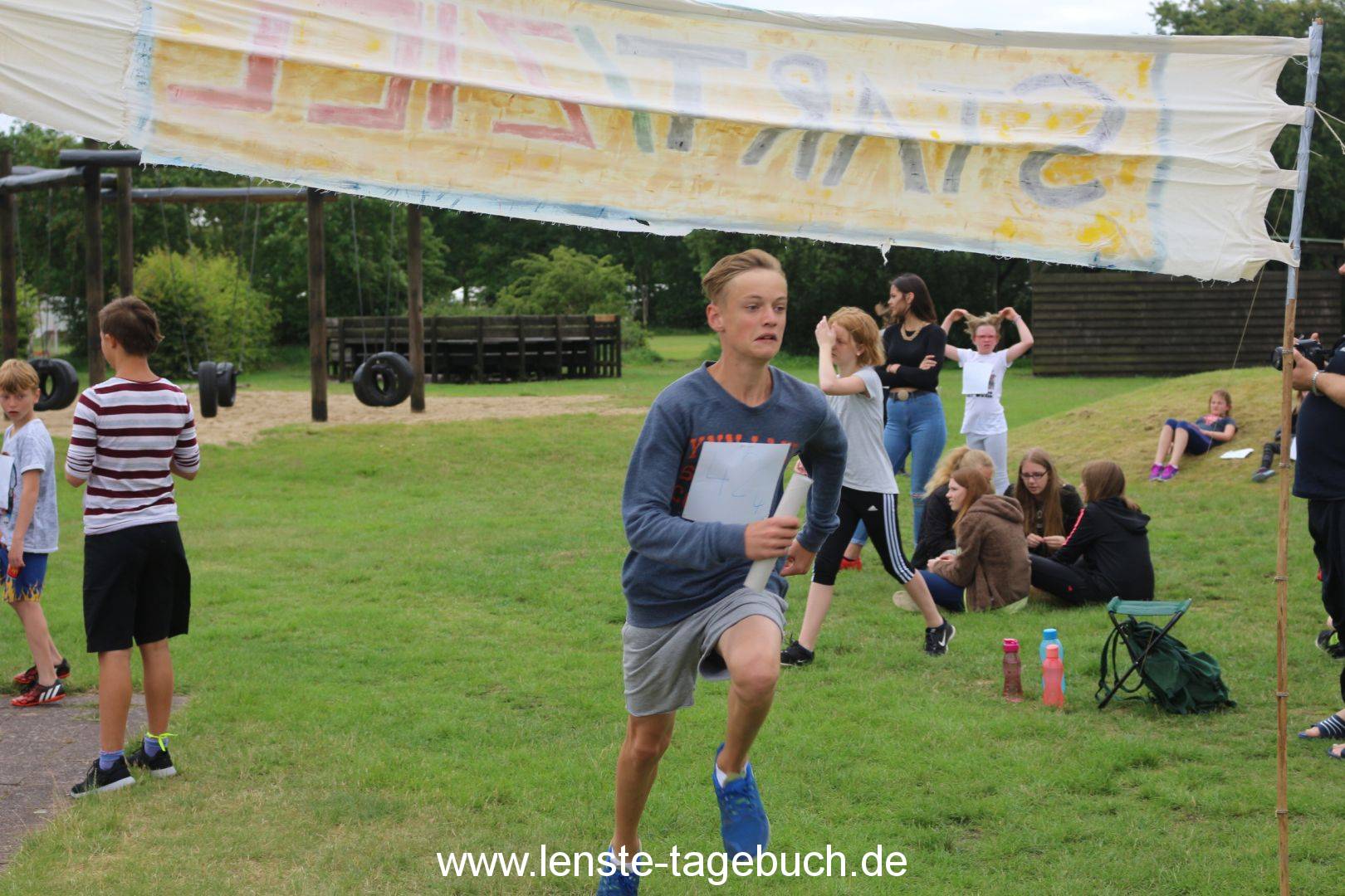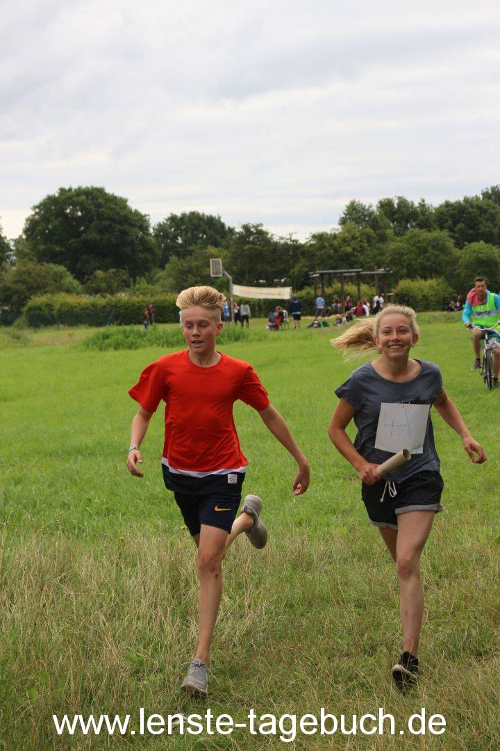 Der Nachmittag beginnt mit einem weiteren Staffellauf – diesmal von den Ü16 – rund um den großen Zeltplatz. Wobei… eigentlich laufen sie nur zwischen den Zelten.: