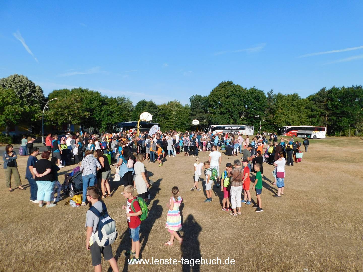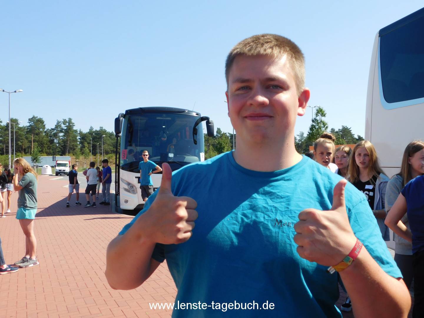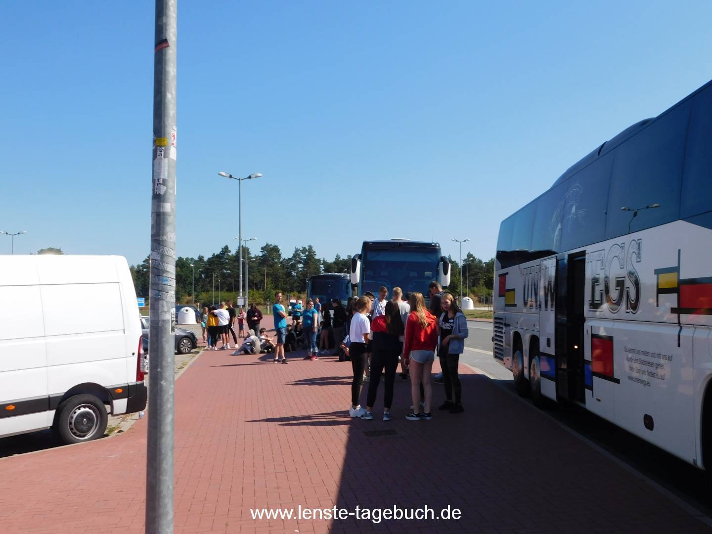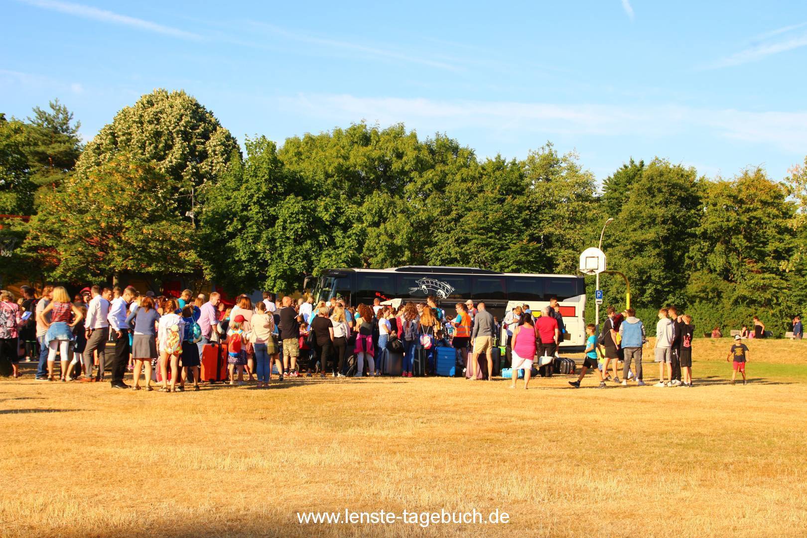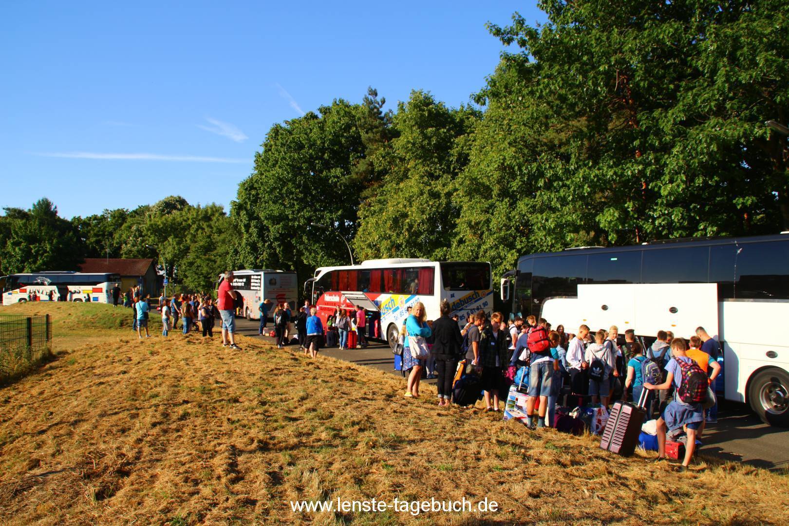 Heute morgen sind wir endlich nach Lenste aufgebrochen. Dafür sind mehr als 200 Teilnehmer samt Familie und Freunden zum Thüringenplatz gekommen. Wie jedes Mal war es auch dieses Jahr ein großes Durcheinander. Aber am Ende waren alle sicher in den Bussen und die Fahrt konnte beginnen.