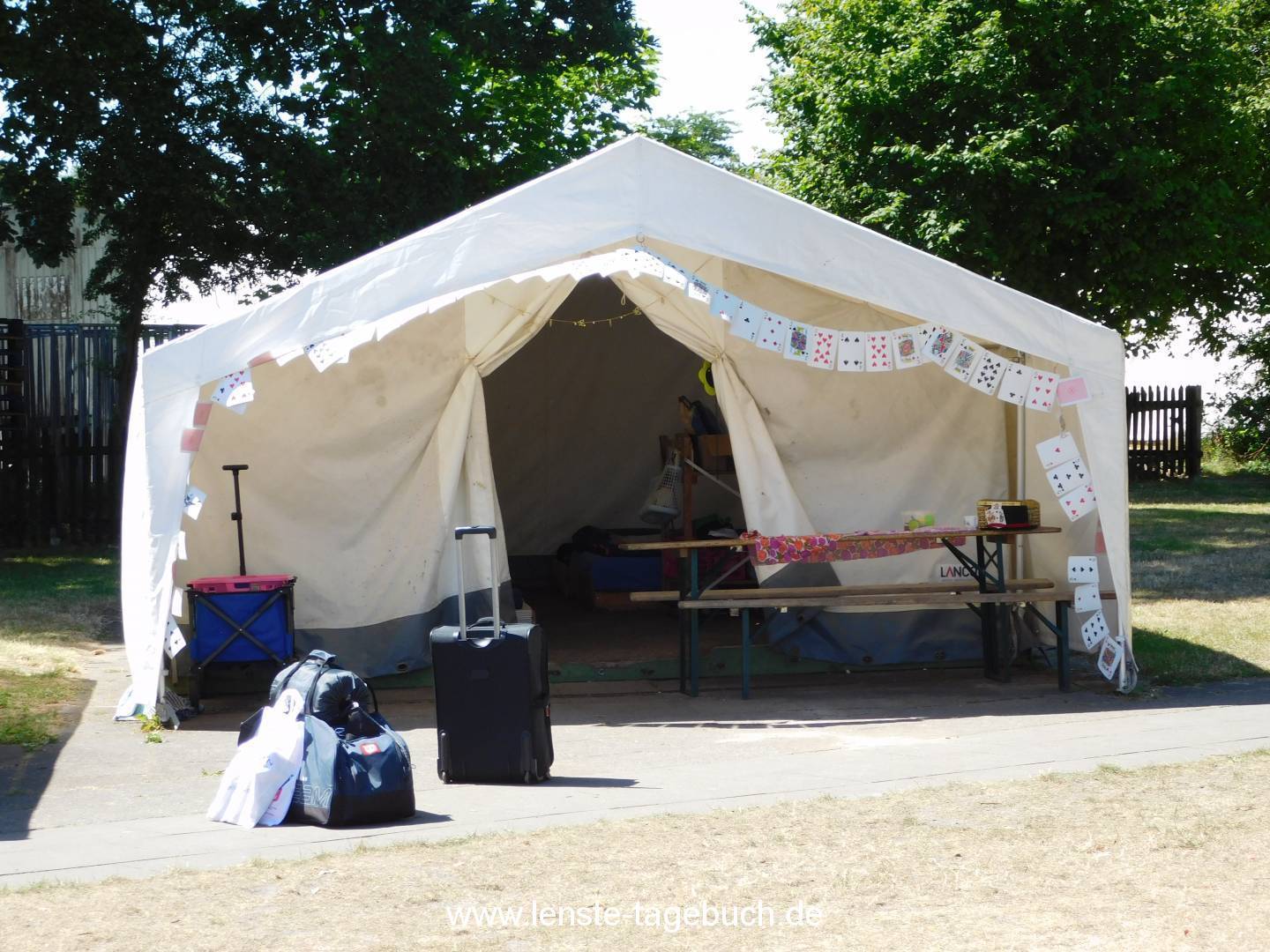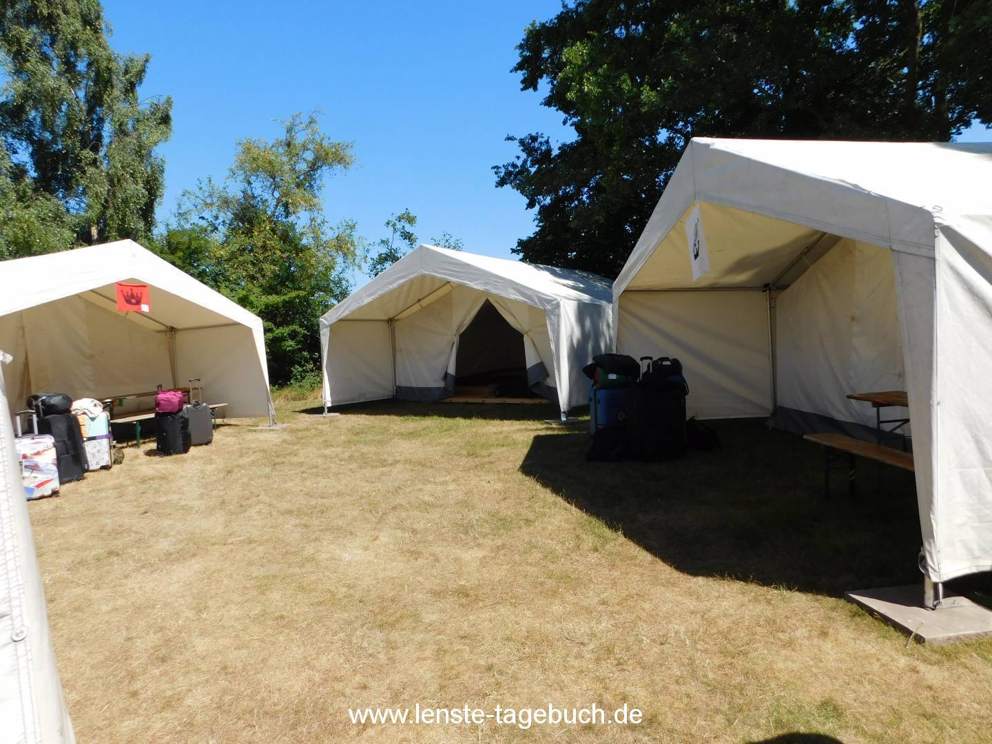 Nach dem Mittagessen wurden die Zelte bezogen und eingerichtet. Danach gab es einen ersten Rundgang über dem Zeltplatz und natürlich wurde bei diesem schönen Wetter auch nicht der Weg zum Strand vergessen. Auch mit Sport und Spaß wurde die lange Fahrt aus den Knochen geschüttelt.