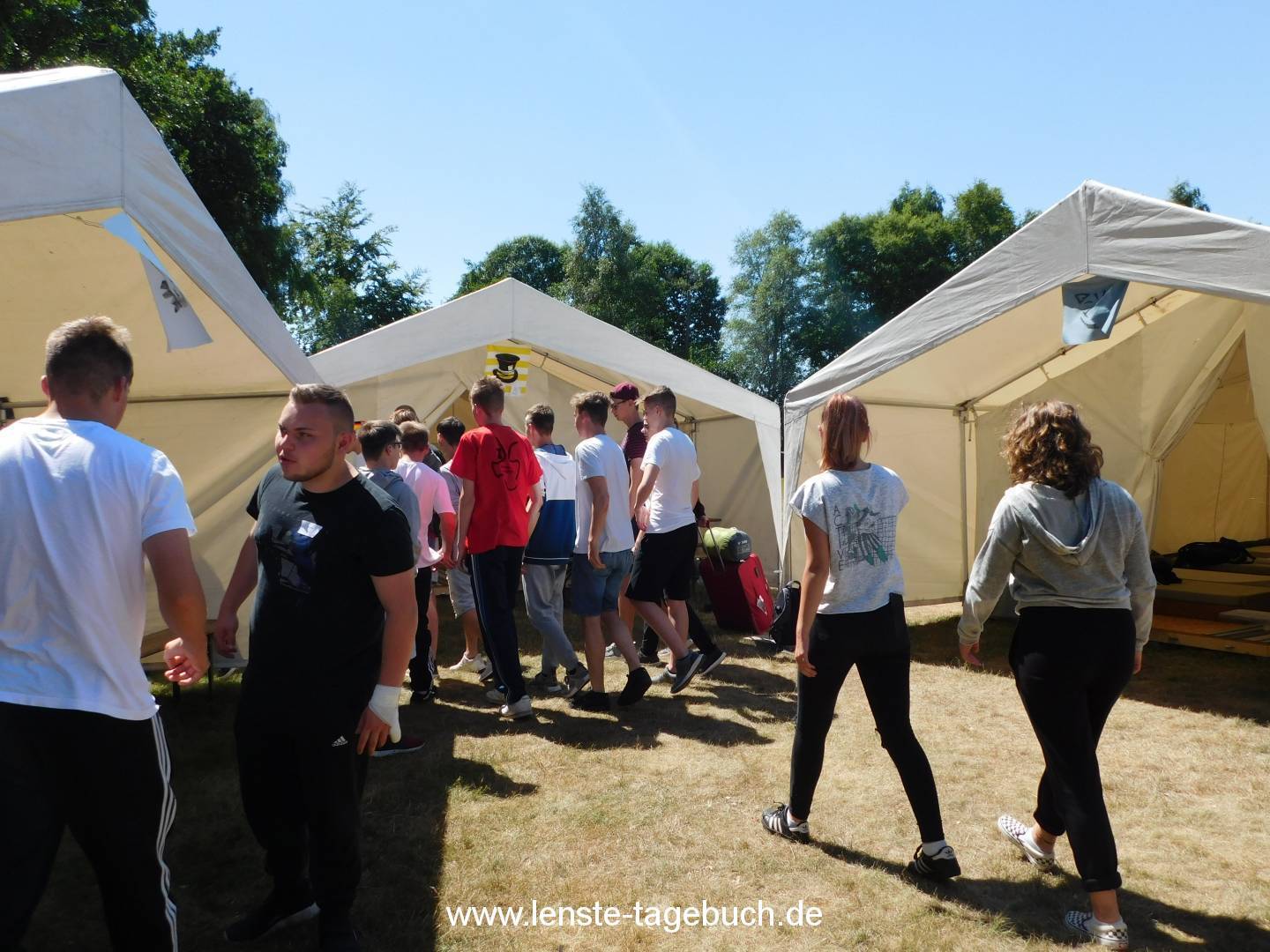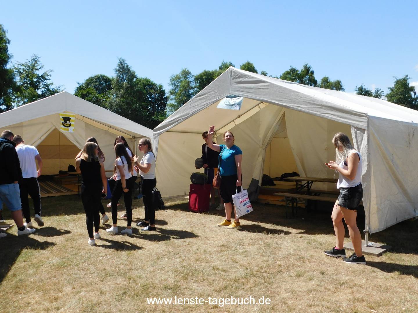 BuszeitungNach einigen kleinen Staus erreichten wir dann endlich das Ferienzeltlager Lenste. Nach dem Entladen der Busse, ging es erstmal zum Mittagessen und man konnte sich mit leckeren Nudeln in Tomatensoße stärken.