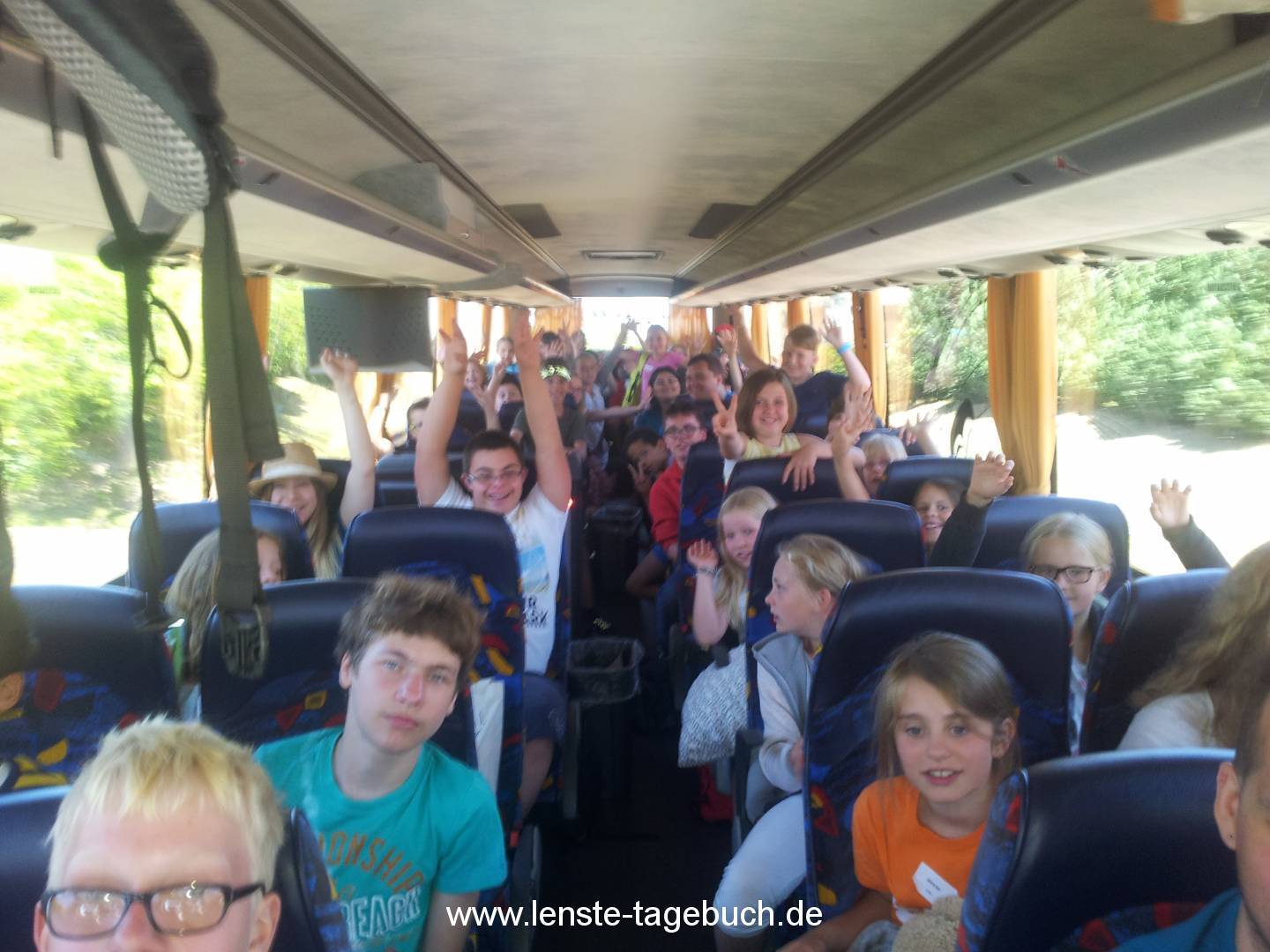 Für Unterhaltung im Bus sorgte die Bus-CD. Auf dieser sind die aktuellen Hits und zwischendurch haben sich alle Betreuer schon einmal vorgestellt. In der ersten Ausgabe der Lenste-Zeitung gab es viele weitere Infos rundum Lenste und das diesjährige Motto. Mit dem tollem Rätsel in der Zeitung verging die Zeit wie im Flug. Hier könnt Ihr die Buszeitung direkt nachlesen oder über diesen Link auch abspeichern.
