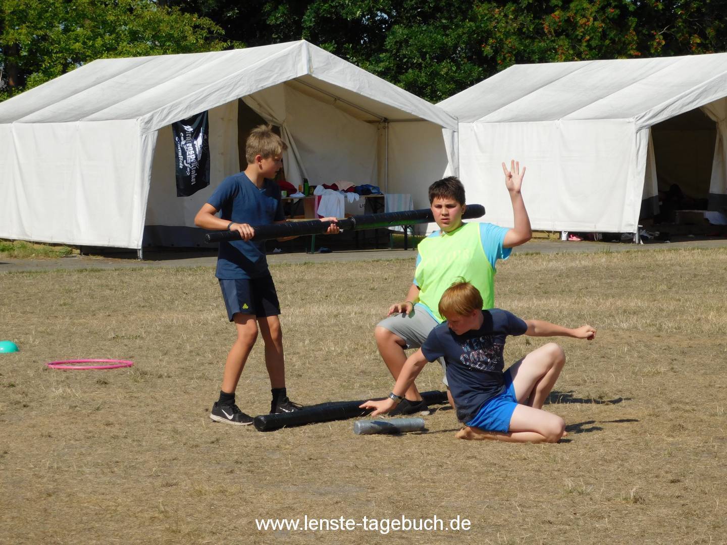 Vormittags fand unser zweiter Projekttag statt. Die Teilnehmer konnten wieder Jugger oder Fußball spielen. Für das Projekt Sportabzeichen wurde die Disziplin Werfen abgenommen. Weitere Projekte waren die Lagerzeitung und Haarbandflechten.