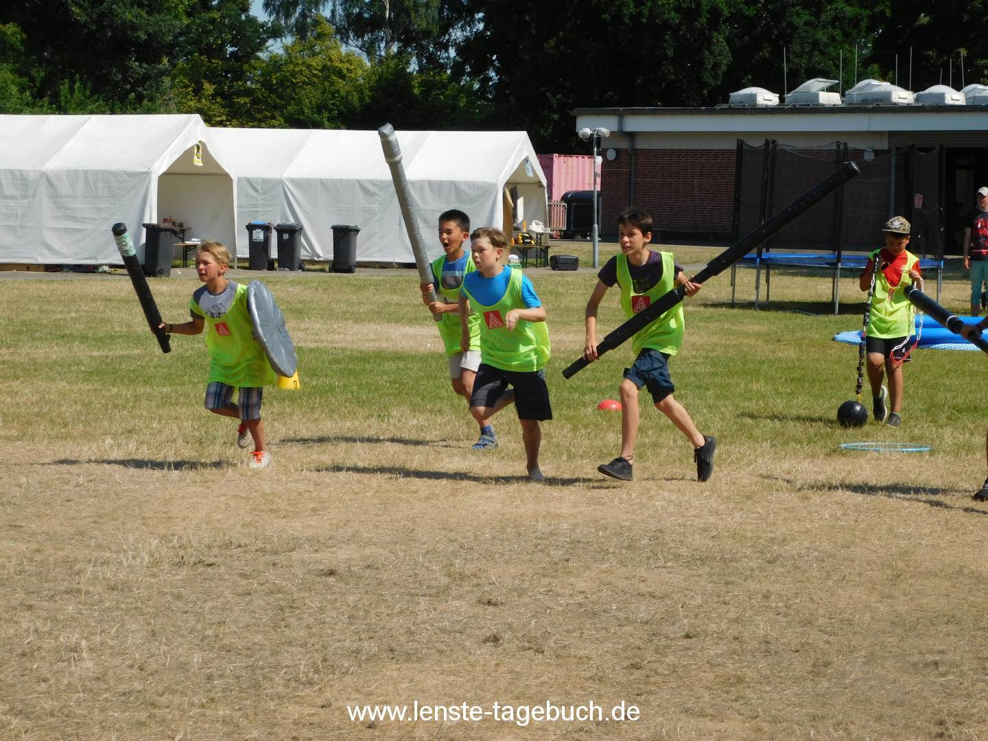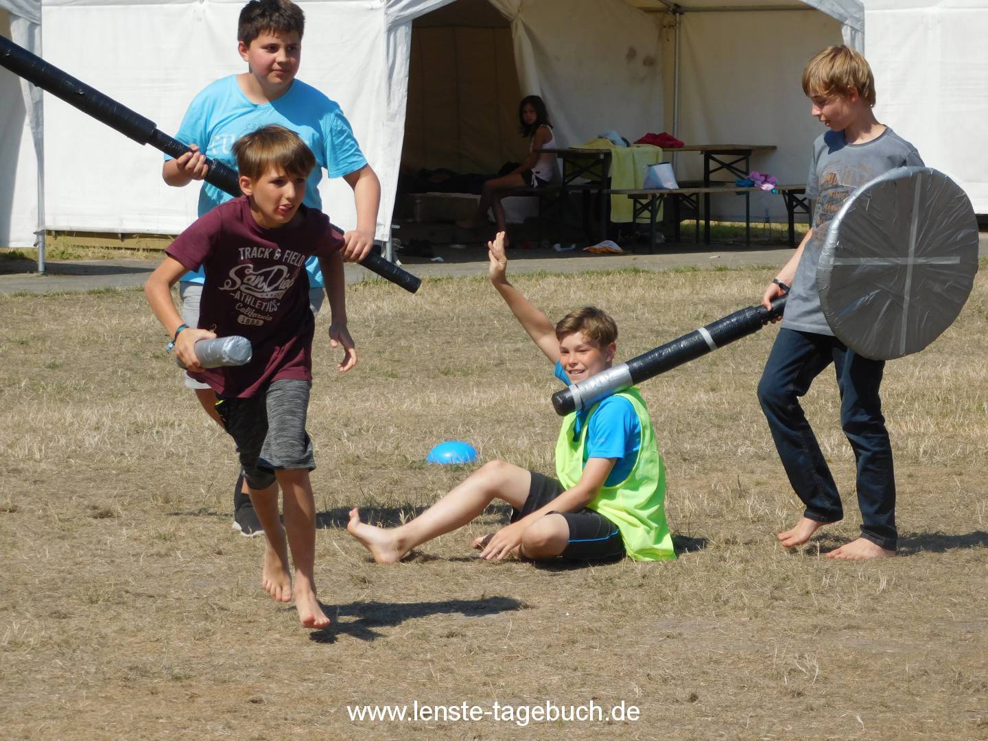 Vormittags fand unser zweiter Projekttag statt. Die Teilnehmer konnten wieder Jugger oder Fußball spielen. Für das Projekt Sportabzeichen wurde die Disziplin Werfen abgenommen. Weitere Projekte waren die Lagerzeitung und Haarbandflechten.