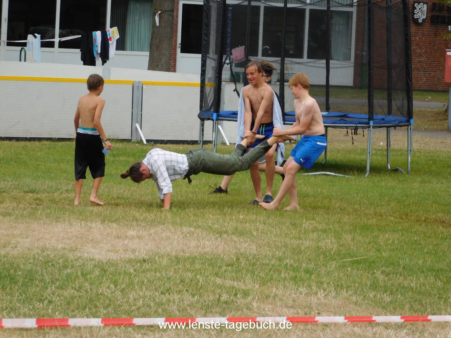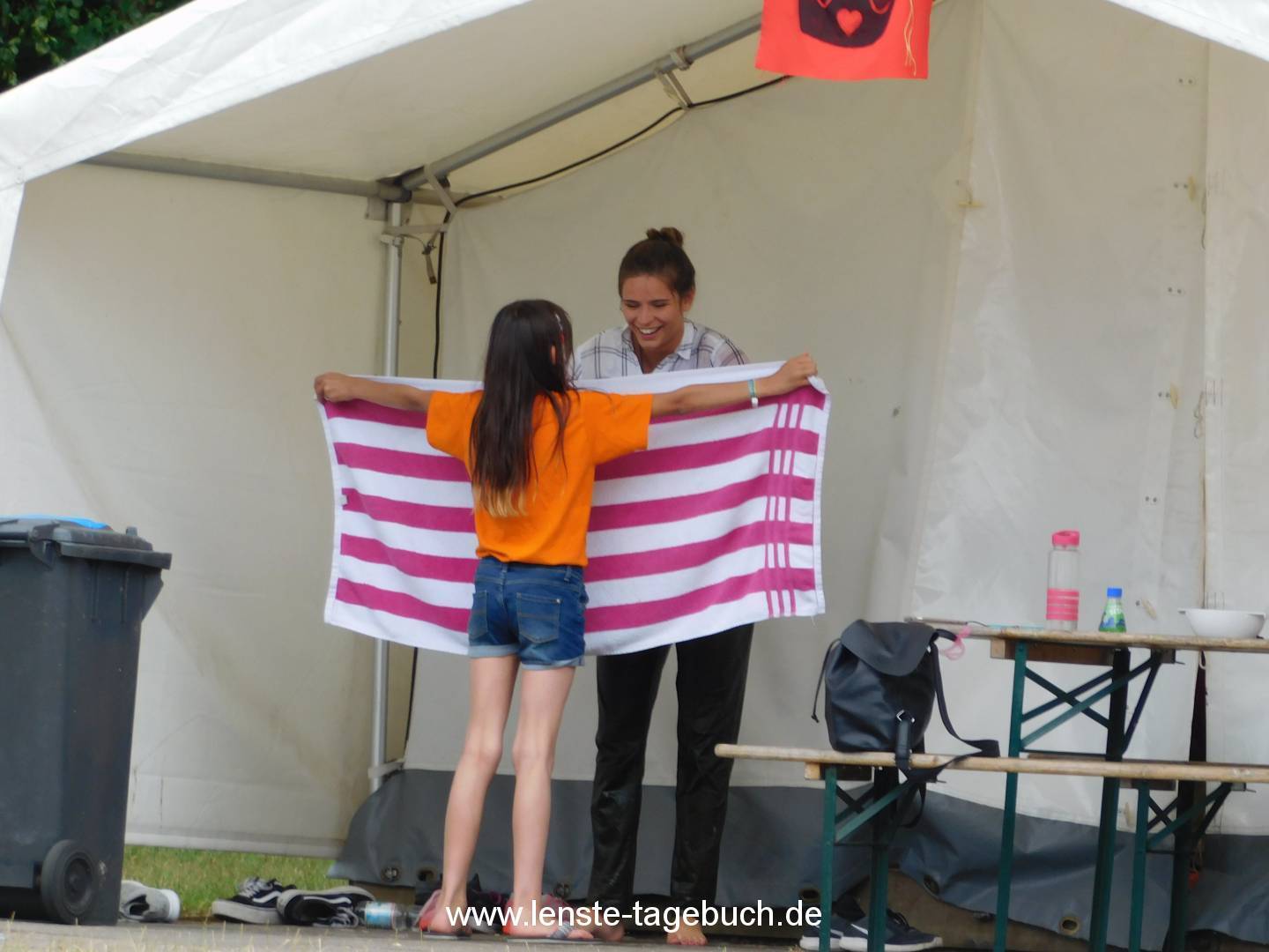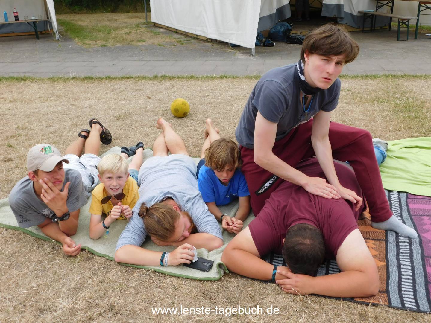 Danach verteilte das Party-Komittee mit einer kunstvollen Einlage den wöchentlichen Kuchen. Sportlich ging es entsprechend des Mottos weiter: Es fanden der erste und zweite Spieltag von Wunderball statt. Das ist eine abgewandelte Form des Völkerballs. Abends gab es dann unsere große Filmnacht. Als ersten Film gab es Hotel Transsilvanien und danach für die Größeren Black Panther.