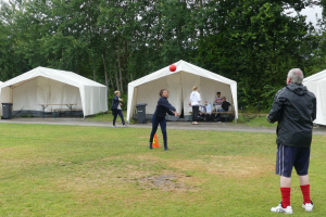 Der Morgen begann wolkenverhangen. Doch der Regen der Nacht hatte sich verzogen und einem nährreichen Frühstück stand nichts mehr im Wege. Nach dem Frühstück hatten unsere großen und kleinen Held:innen die Möglichkeit, ihren Vormittag mit Feldhockey oder mit Brennball zu verbringen. Bei der Freizeitzeitung konnten sich die Kids kreativ ausleben. Wer dies alles nicht mochte, konnte auf das Zeltlagerprogramm verzichten und seine Zeit frei gestalten.