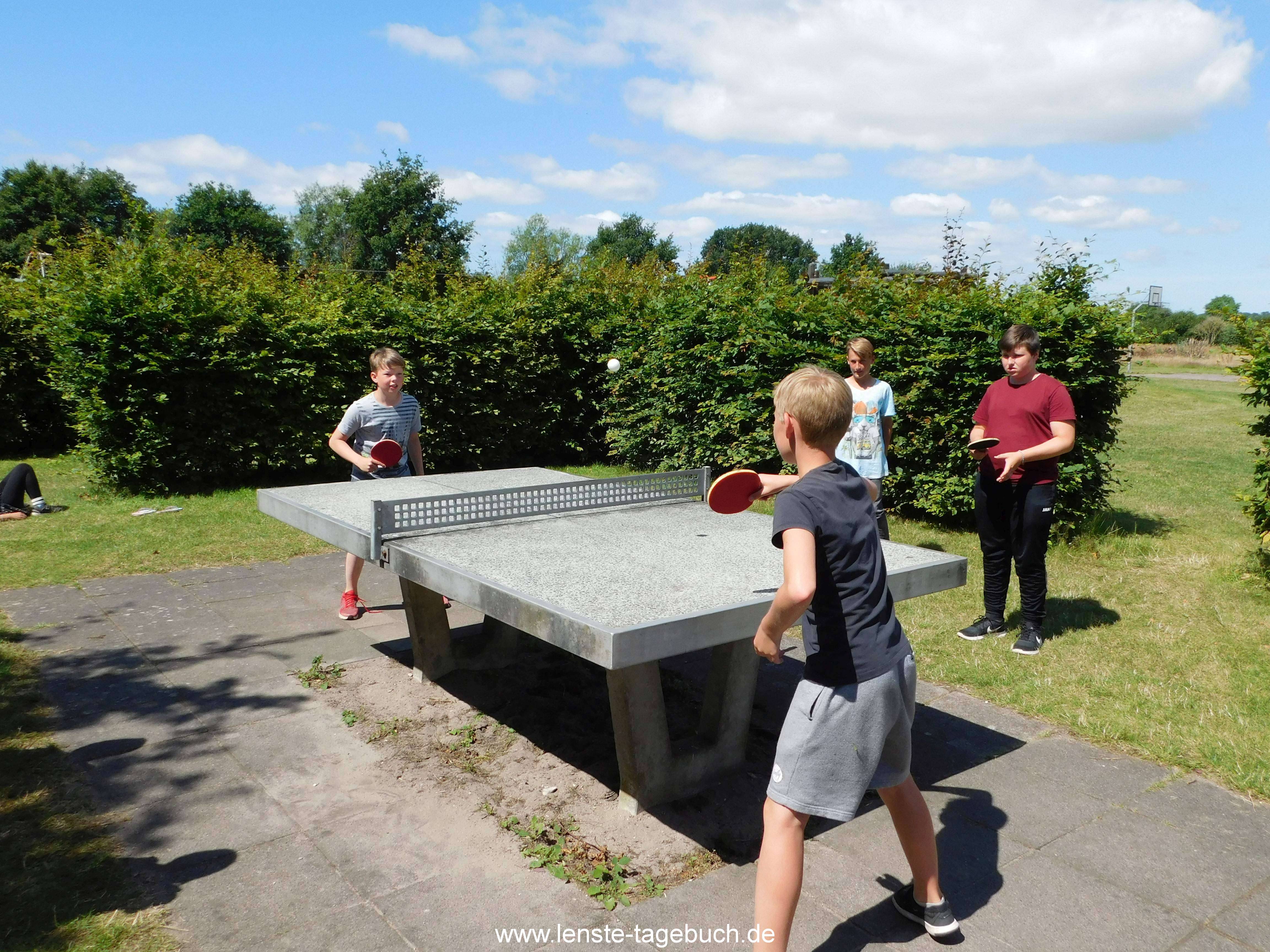 Im Zeltlager gibt es kaum eine freie Minuten an denen die vier Tischtennisplatten im Zeltlager nicht mit großem Eifer bespielt werden. Damals wie heute gehört das Tischtennisspiel für die großen und kleinen Teilnehmer zum Zeltlagerleben dazu. Aus diesem Grund darf ein Tischtennisturnier unter den Kindern sowie unter den Betreuern natürlich auch nicht fehlen. In eng umkämpften Matches wurde um Punkte und Sätze gerungen ohne dabei den Spaß am Spiel aus den Augen zu verlieren. Bei den Betreuern konnte sich am Ende unser langjähriger Tischtennismeister Björn durchsetzen. Mit viel Erfahrung und Ruhe ließ er auch seinen jüngeren Konkurrenten am Ende alt aussehen und erwies sich als wahrer Meister an der Platte. Doch auch bei den Teilnehmern wurde geschmettert und geschnibbelt was das Zeug hielt. Am Ende setzte sich Nicolas aus Zelt 7 nach vielen engen Matches die Krone auf. Ob er seinen Titel im nächsten Jahr verteidigen kann? Wir werden sehen.