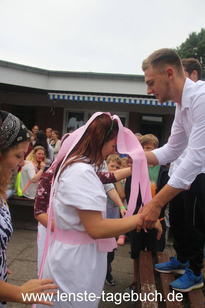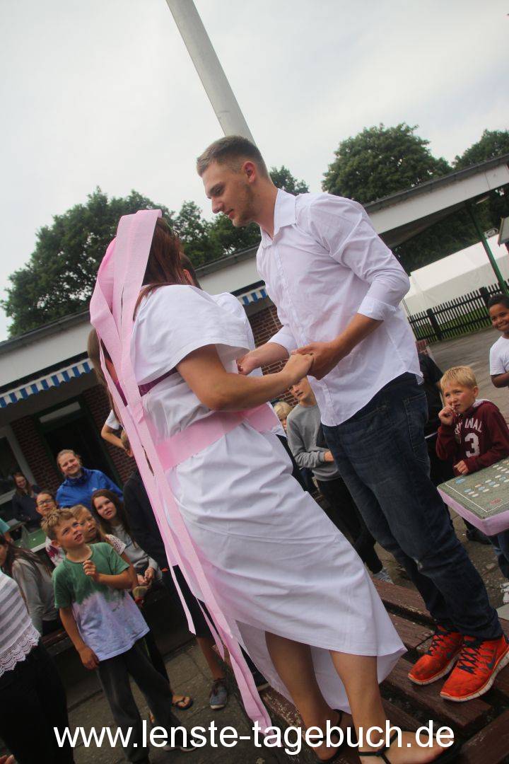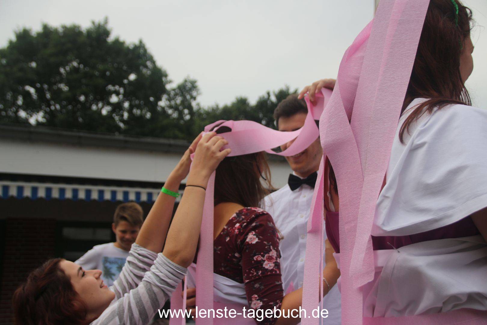 Die Betreuer Sophie & Sebastian und Isabell & Claudius schließen den Bund für ihr Lenste 2016-Leben. Nach den Vorbereitungen im Bastelraum und in der Lagerleitung treffen sich die Brautpaare mit ihren Gästen und Pfarrer DJ am malerischen Platz um den Fahnenmast, um sich gegenseitig das Ja-Wort zu geben. Beglückwünscht und gefeiert von über 200 Gästen beginnen die vier nun ihren neuen Lebensabschnitt.