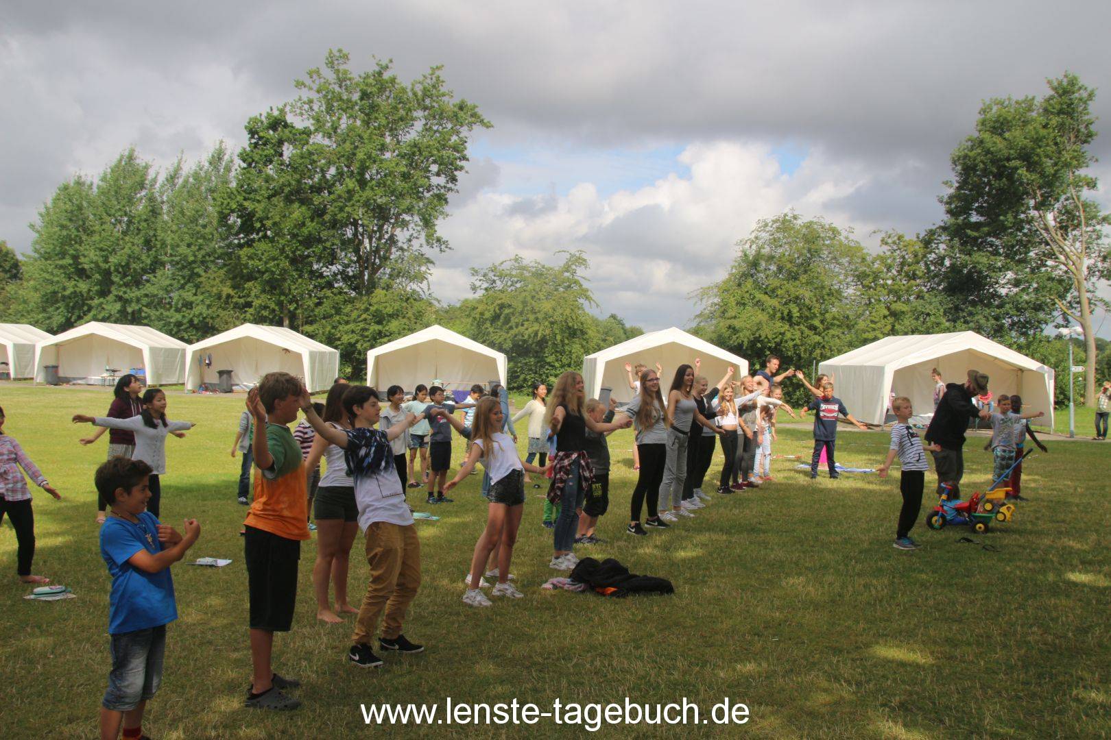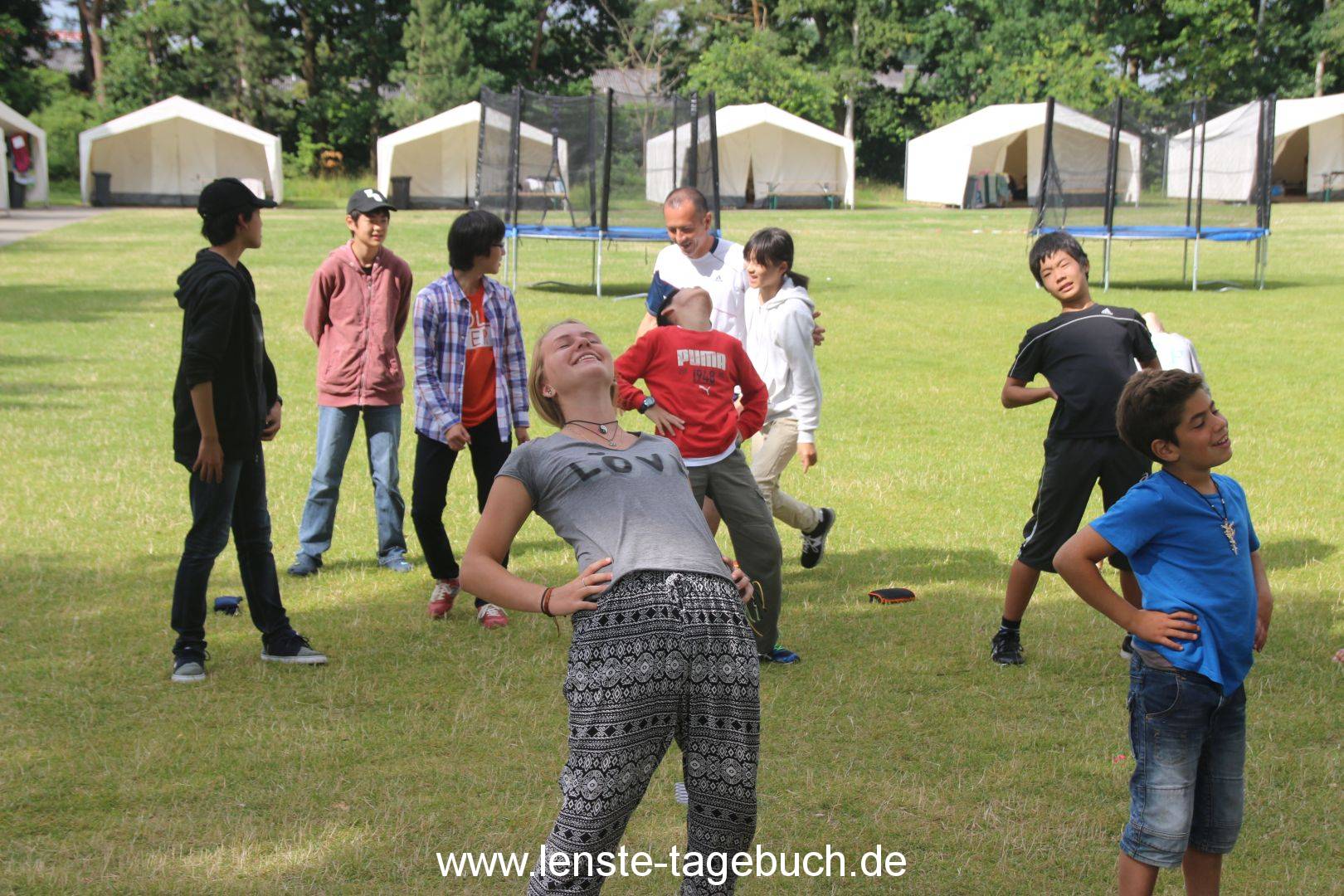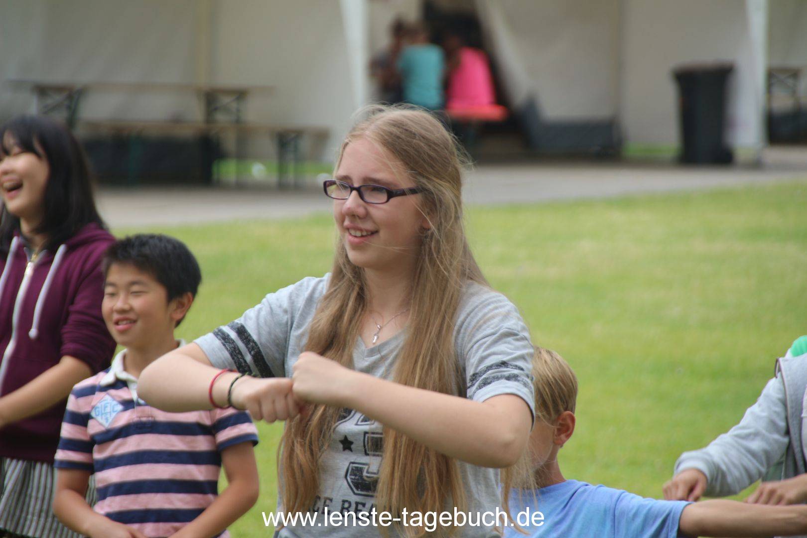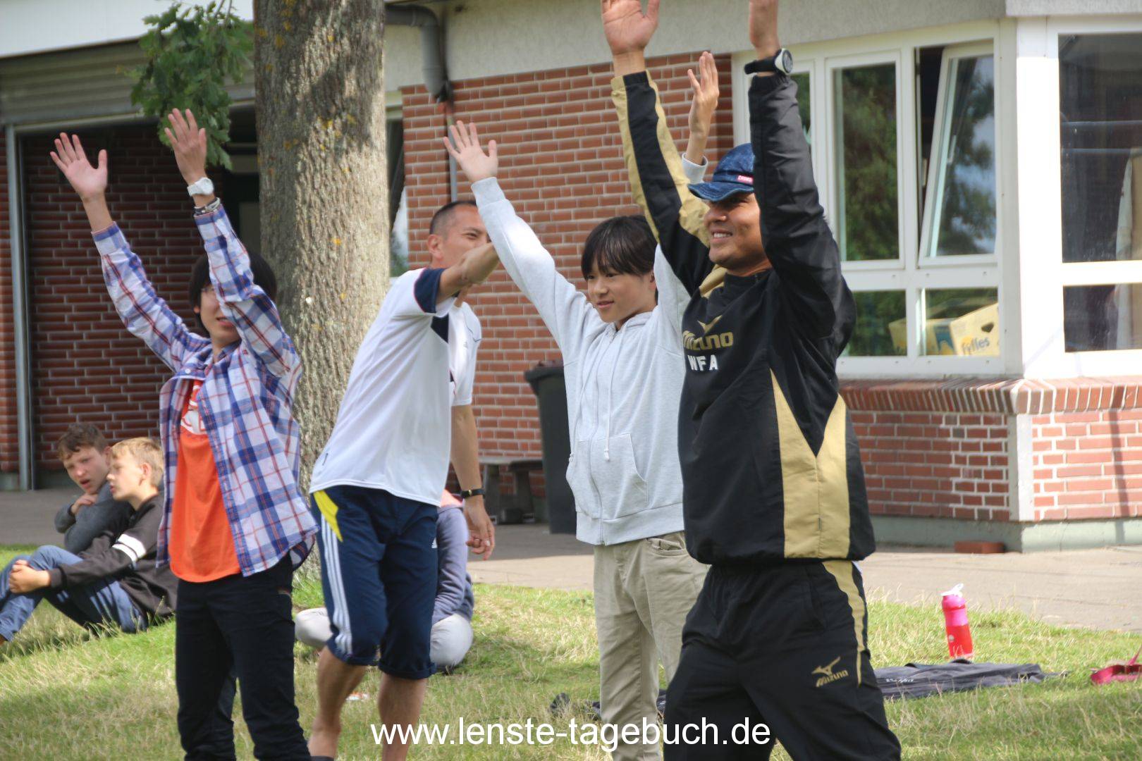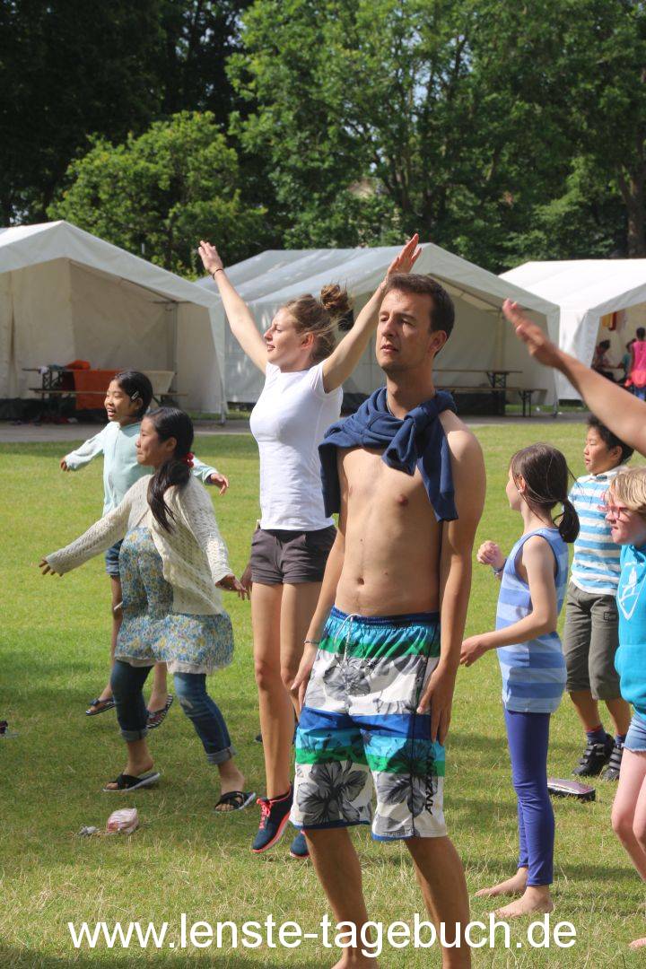 Heute will die Sonne nicht so richtig raus kommen, so dass es fast schon einwenig fröstelig ist. Aber zum Glück bleibt es am Vormittag trocken. Zum Wiederaufwärmen gibt es eine Runde Yoga, zusammen mit unseren Freunden von der japanischen Schule Hamburg. Und auch das Zuschauen macht Freude, aber seht selbst 🙂