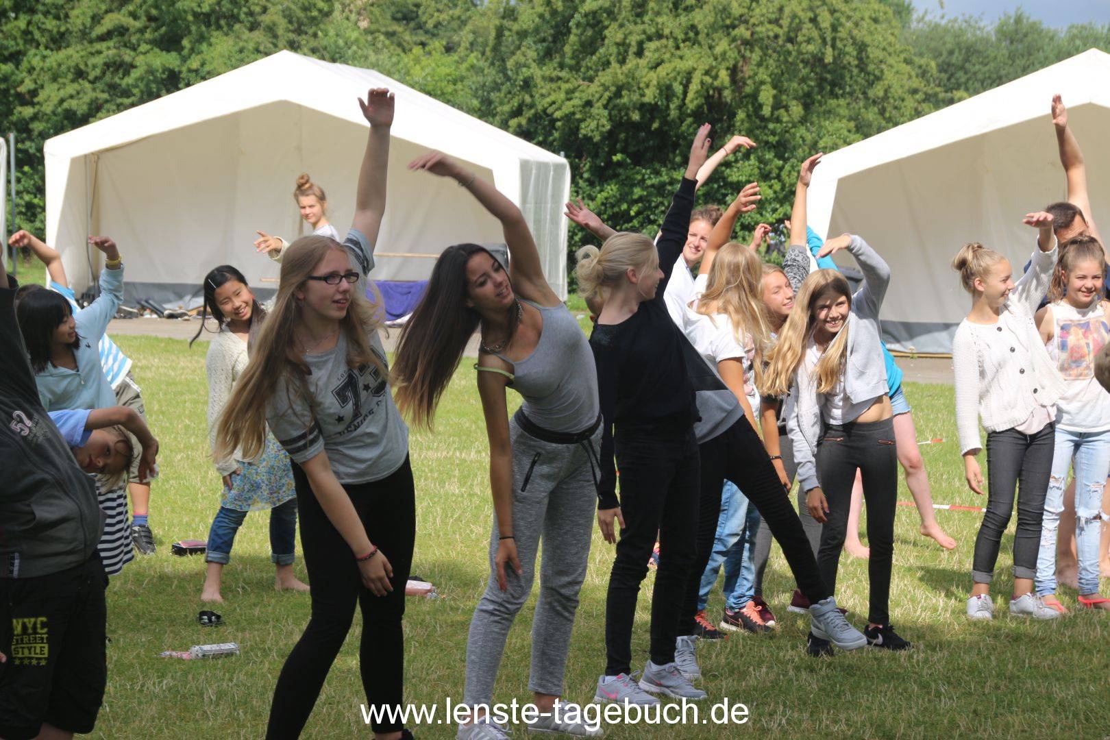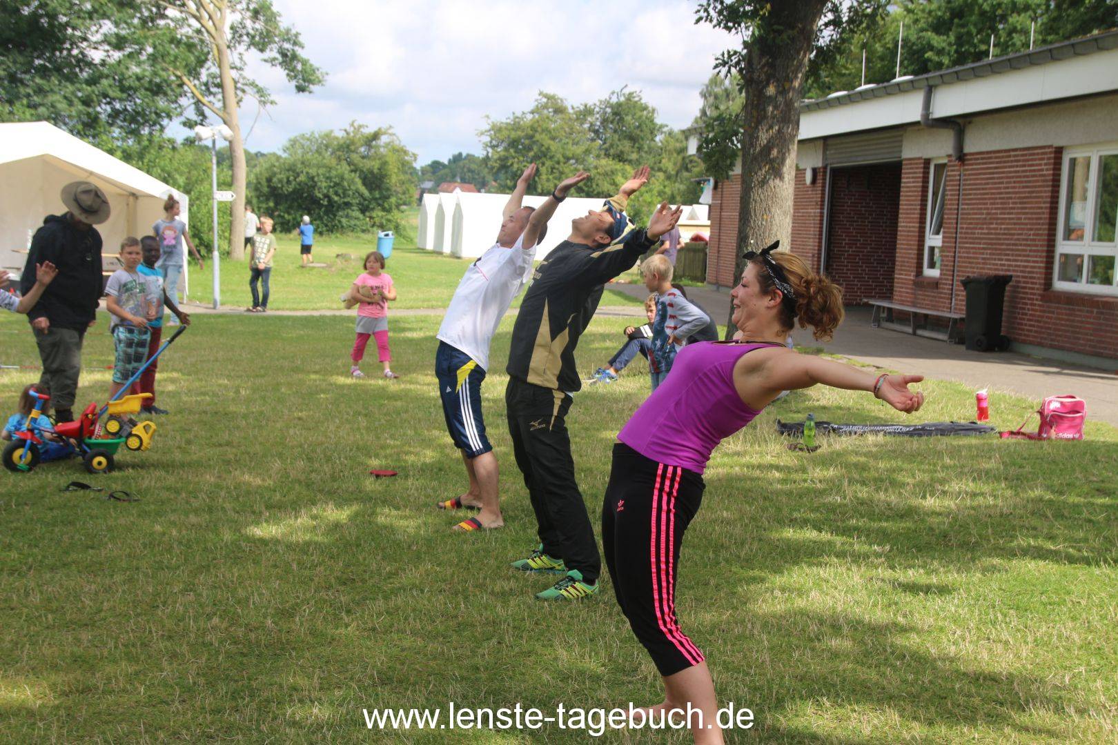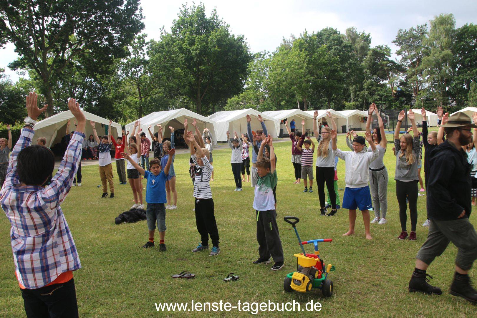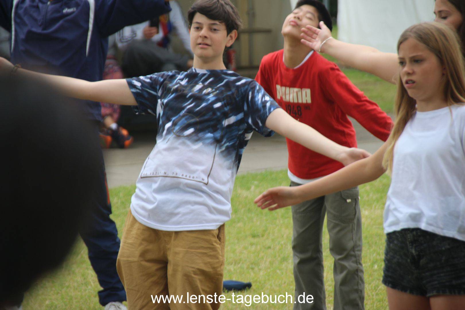 Heute will die Sonne nicht so richtig raus kommen, so dass es fast schon einwenig fröstelig ist. Aber zum Glück bleibt es am Vormittag trocken. Zum Wiederaufwärmen gibt es eine Runde Yoga, zusammen mit unseren Freunden von der japanischen Schule Hamburg. Und auch das Zuschauen macht Freude, aber seht selbst 🙂