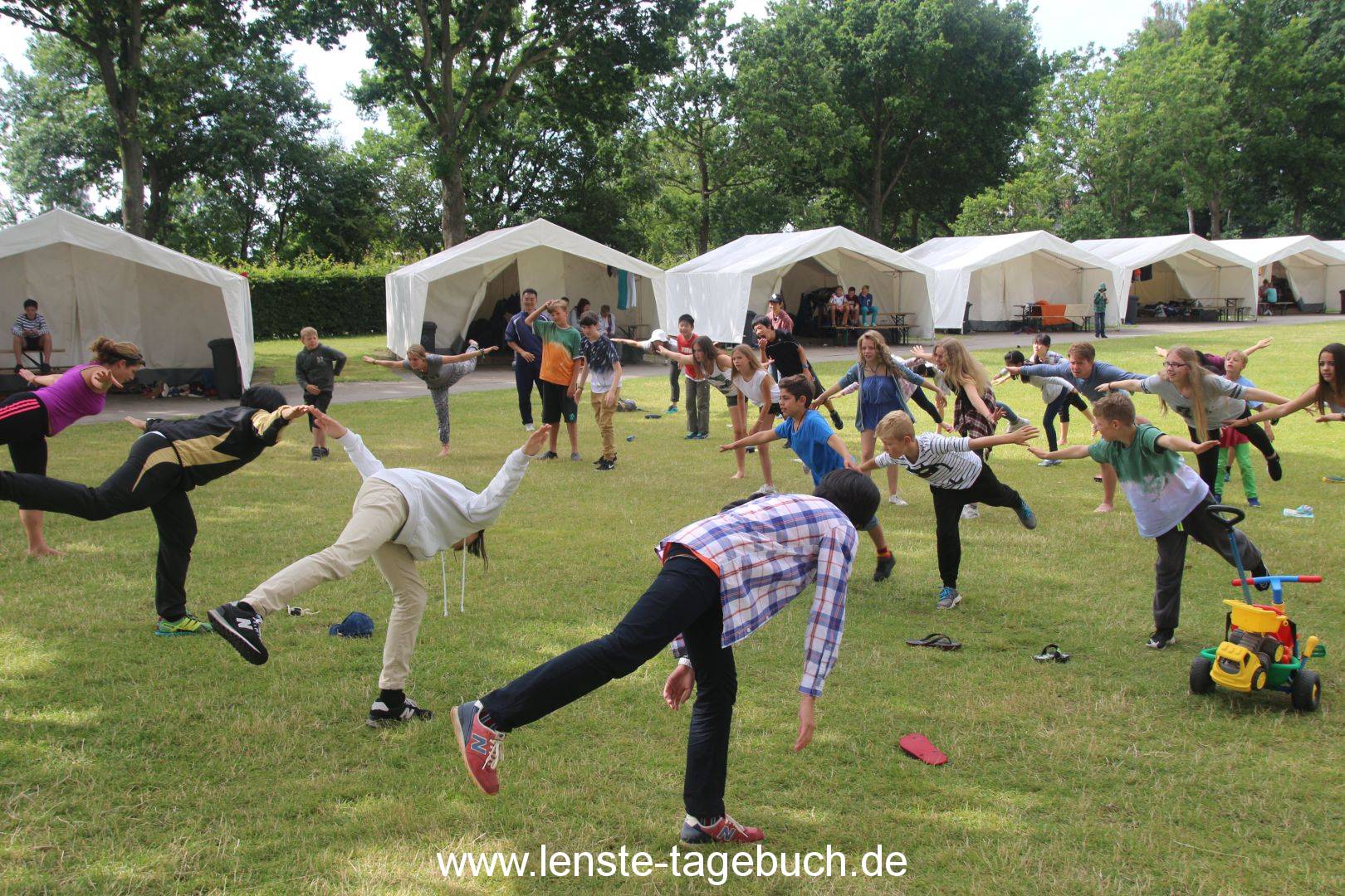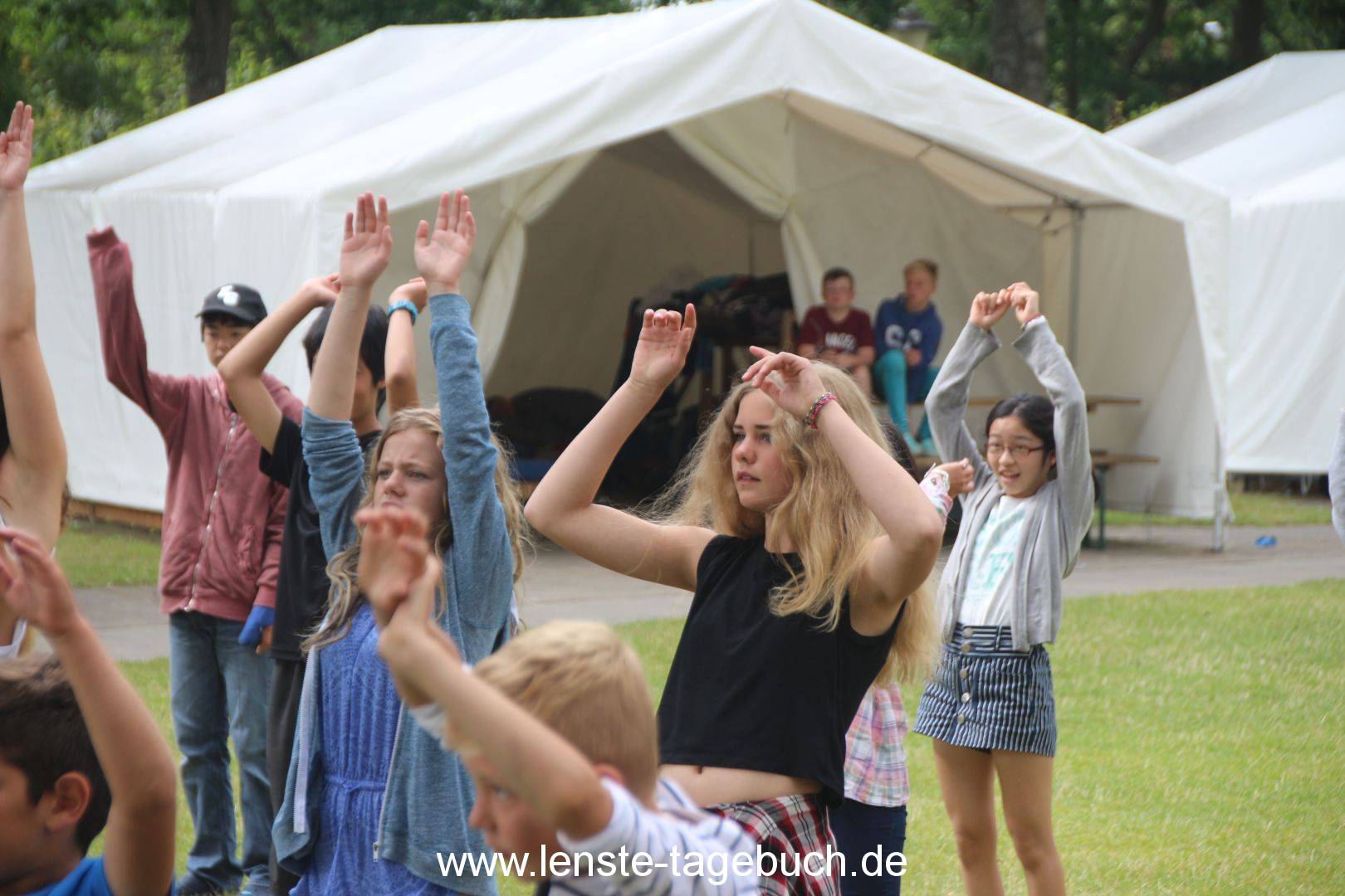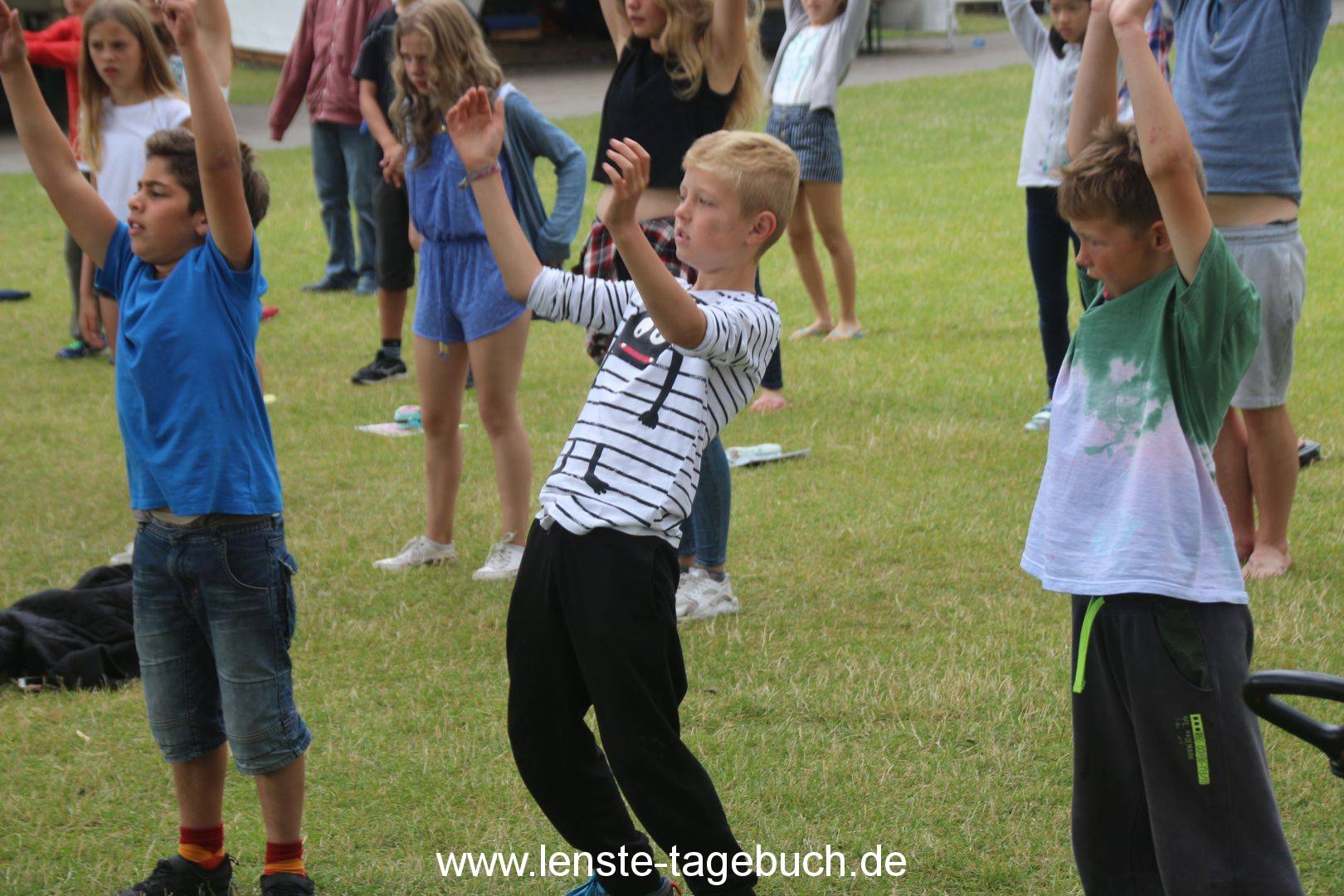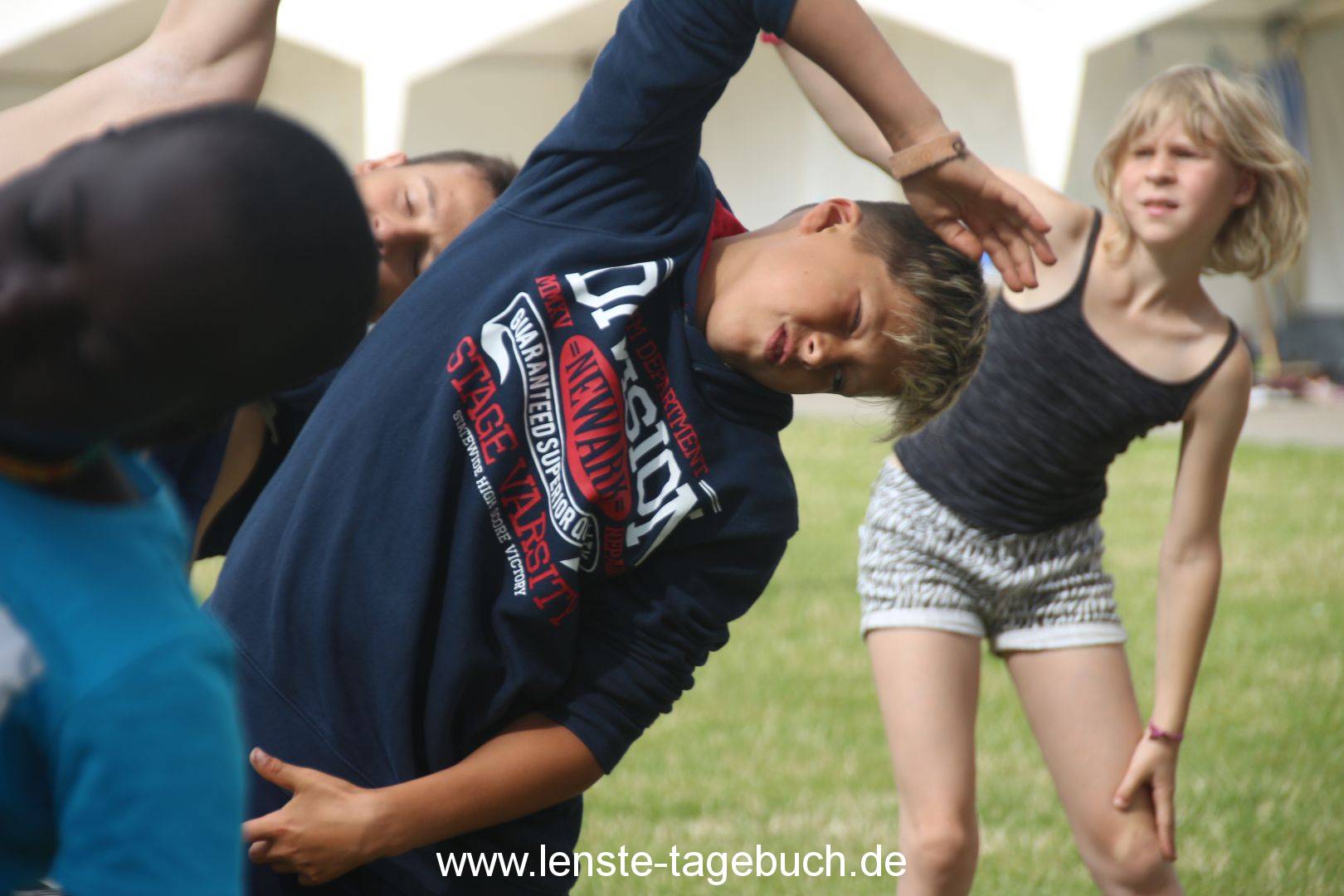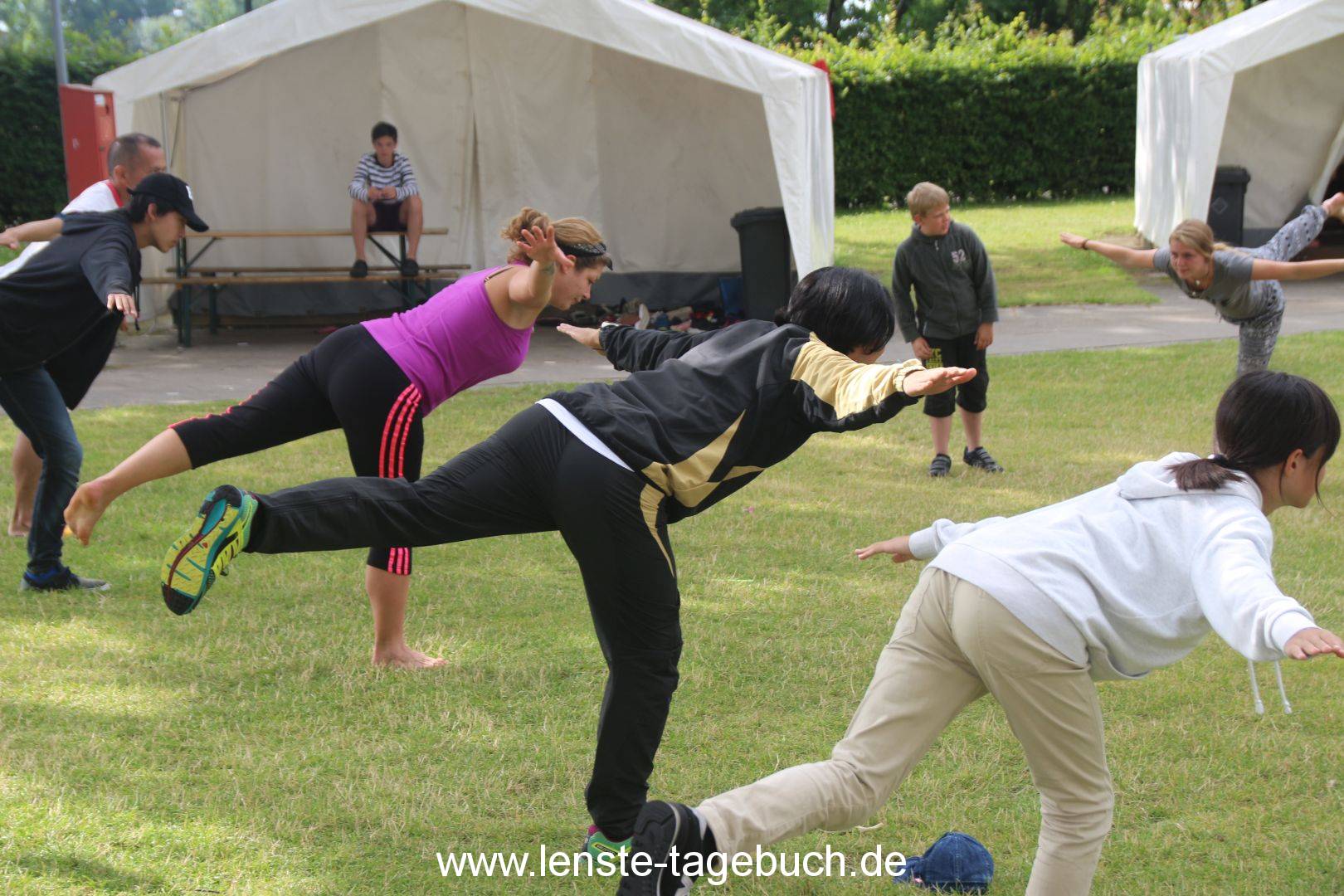 Heute will die Sonne nicht so richtig raus kommen, so dass es fast schon einwenig fröstelig ist. Aber zum Glück bleibt es am Vormittag trocken. Zum Wiederaufwärmen gibt es eine Runde Yoga, zusammen mit unseren Freunden von der japanischen Schule Hamburg. Und auch das Zuschauen macht Freude, aber seht selbst 🙂