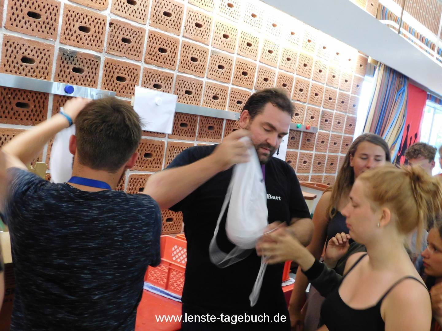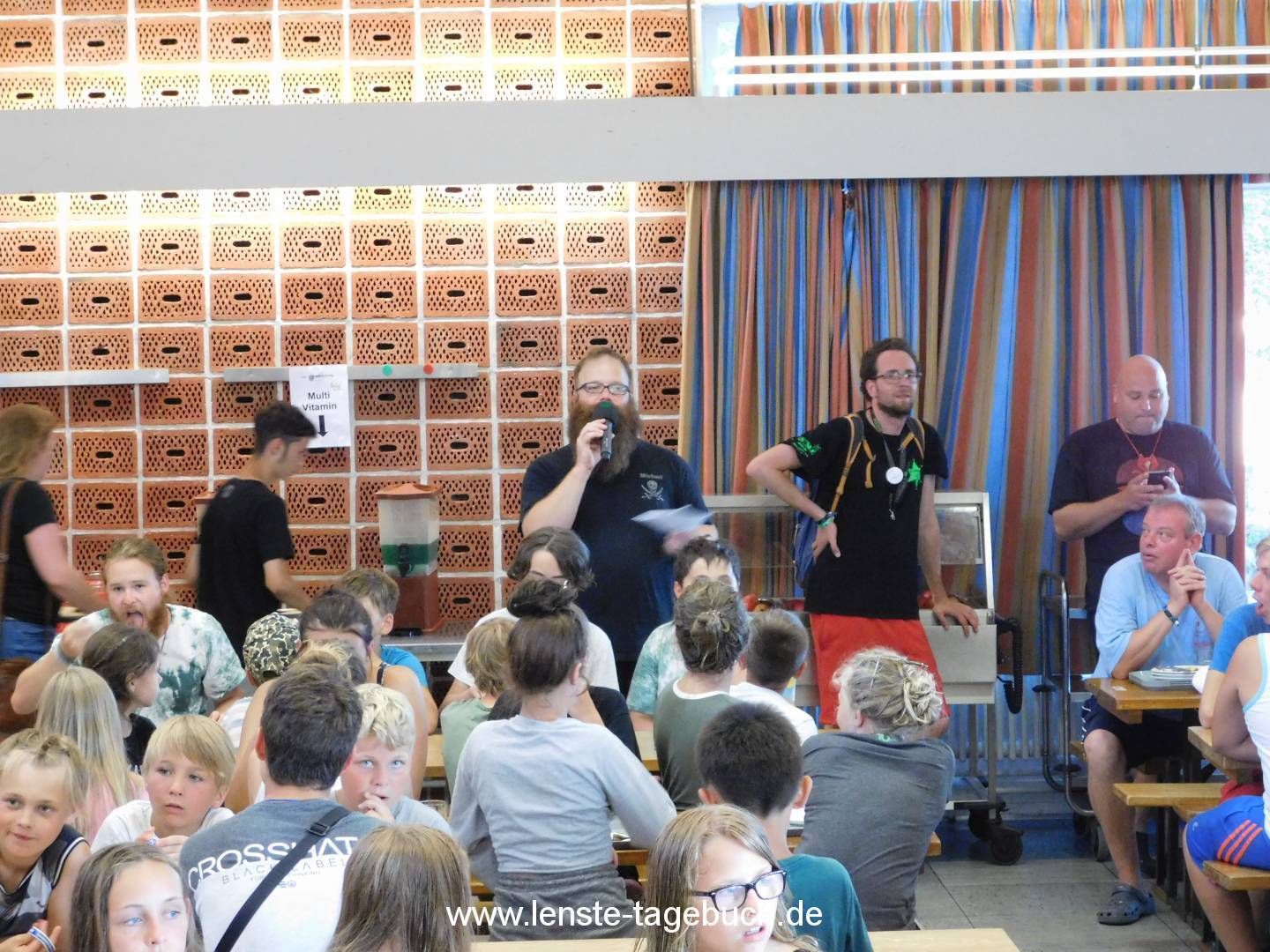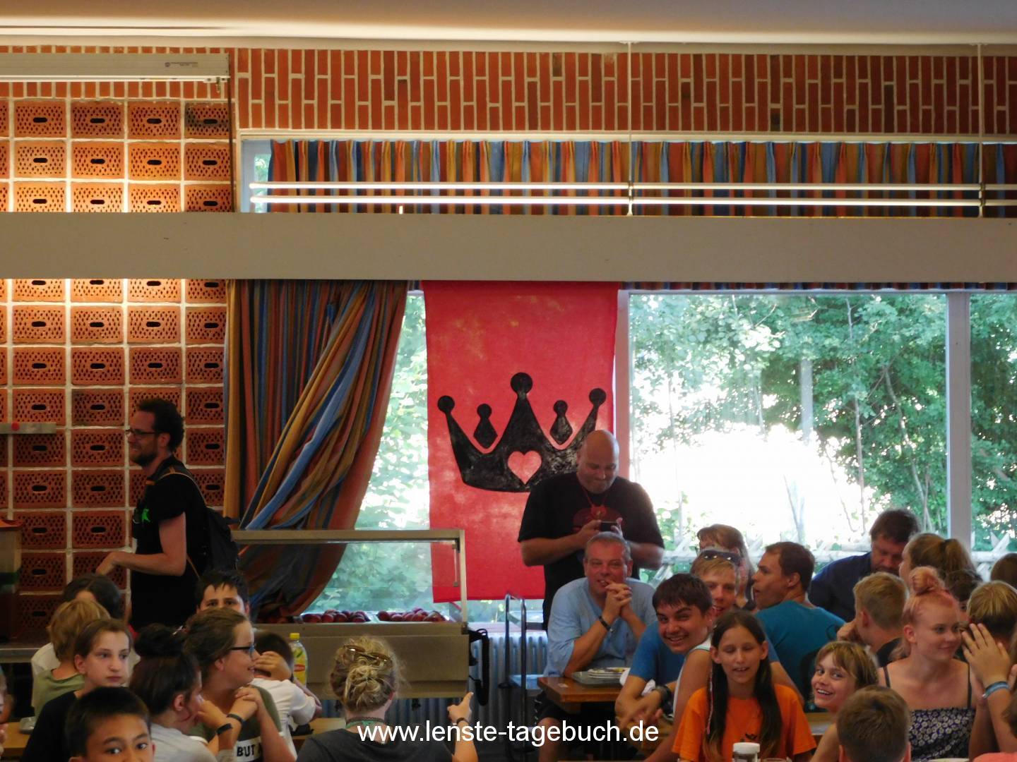 Um sich von dem Stress zu erholen, gab es zum Mittagessen gegrilltes Hähnchenbrustfilet mit Paprikasauce und Reis. Während des Mittagessens gab es die große Siegerehrung der Teams. Das Team der Rote Königin hat sich knapp gegen das Team der Grinsekatze durchgesetzt und hat den großen Preis bestehend aus einem Jutebeutel im Teamdesign, einem Teambutton und Süßigkeiten gewonnen.