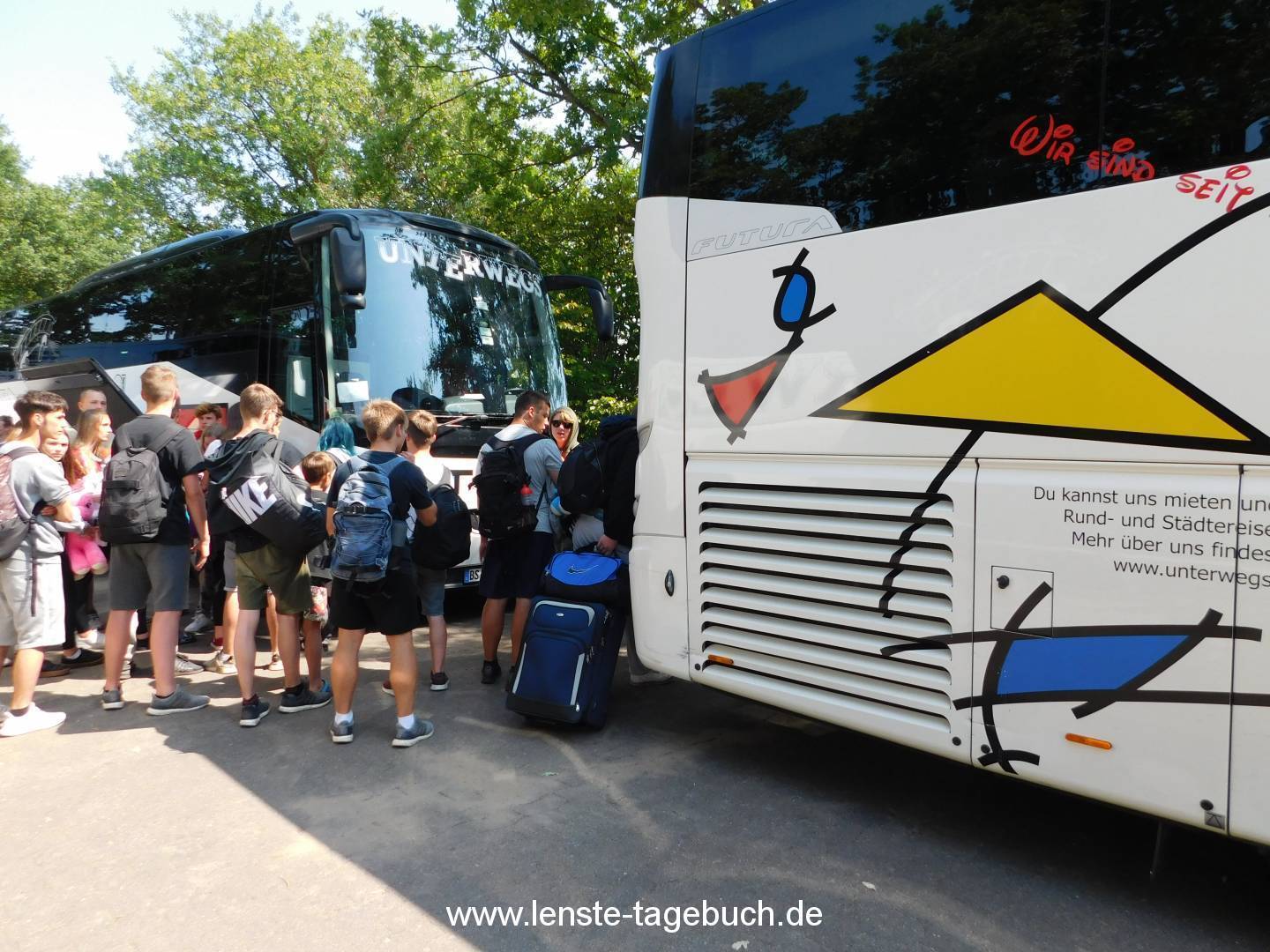 Nach dem Mittagessen dauerte es gar nicht mehr lange und der erste Bus fuhr auf dem Parkplatz. In Kürze erreichten auch alle anderen Busse Lenste. Während die Busse entladen wurden, hießen wir die Neuankömmlinge gebührend willkommen. Danach konnten wir die Busse wieder beladen und schon machten wir uns auf den Weg nach Hause. Mit einem kleinen Stau und 4 Stunden Fahrt erreichten alle Busse um ca. 18:30 den Thüringenplatz in Braunschweig. Dort nahmen uns Familie und Freunden fröhlich in Empfang.