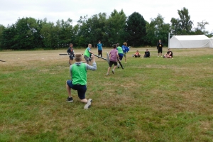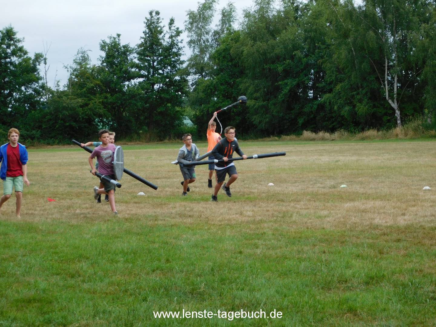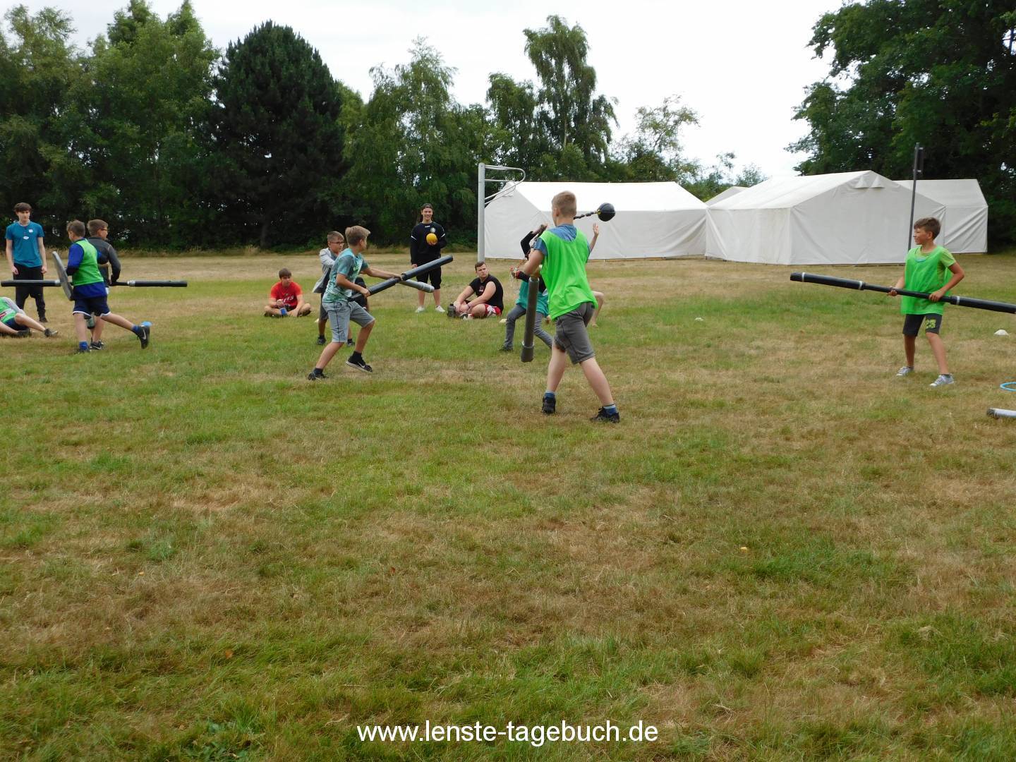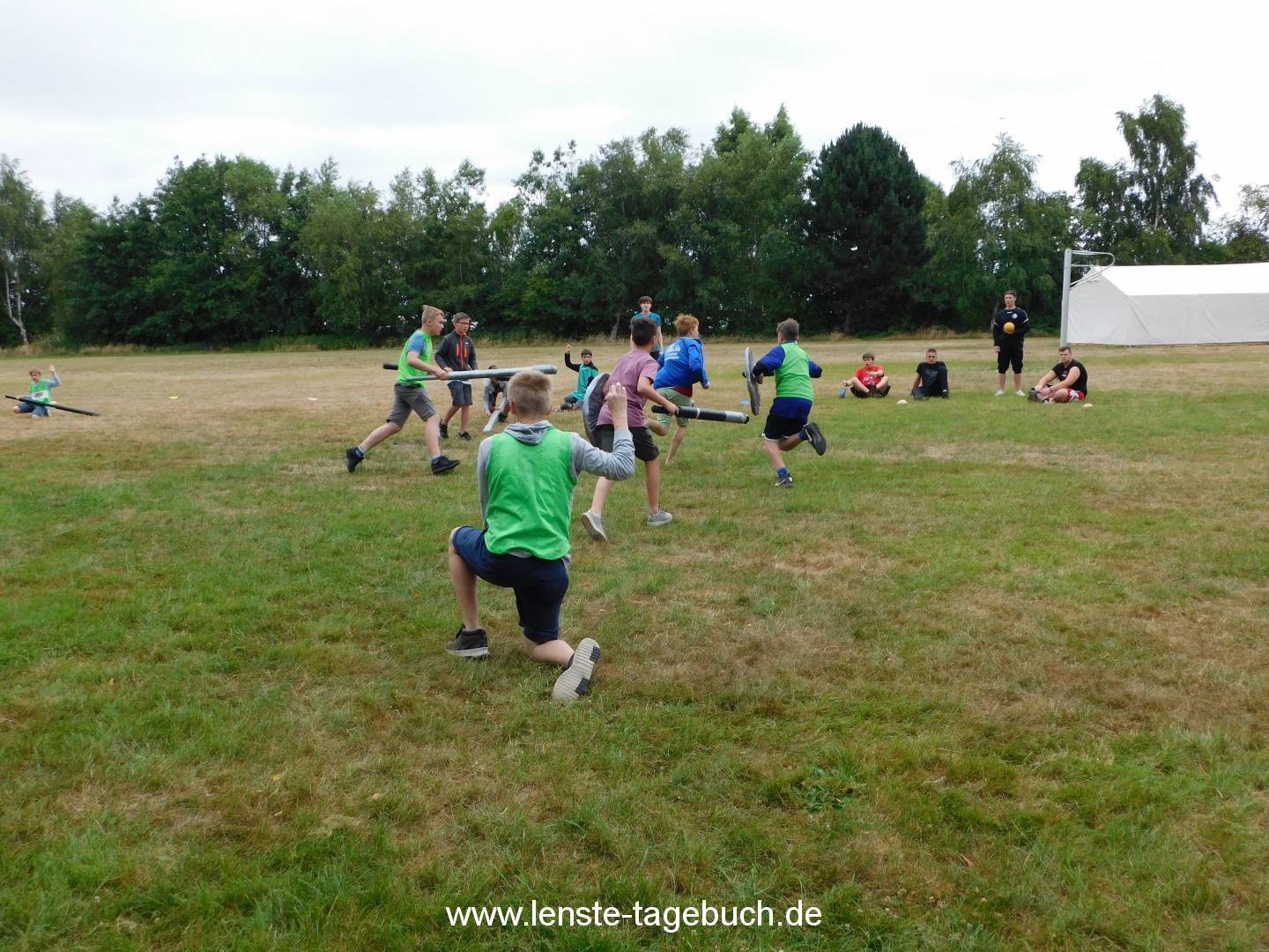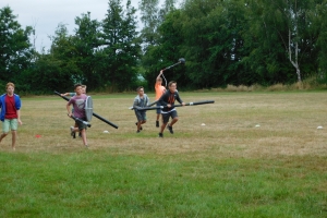 Am Vormittag des zweiten Tages wurden die ersten Projekte angeboten. Es wurde unter anderem Jugger und FuĂźball gespielt. Dort konnten die Kinder erste Grundregeln erlernen und diese auch gleich anwenden. Bei dem Projekt Sportabzeichen konnten die Teilnehmer Ihre ersten Ăśbungen erfolgreich ablegen. Jonglierbälle wurden bei dem Projekt Jonglieren gebastelt und mit diesen konnte das Jonglieren dann ganz leicht erlernt werden. Das Bastelteam hat zusammen mit vielen Kindern eine Fotowand bemalt. Das Zeitungsprojekt hat ihre Reporter losgeschickt und die ersten Interviews fĂĽr die kommende Ausgabe gesammelt.