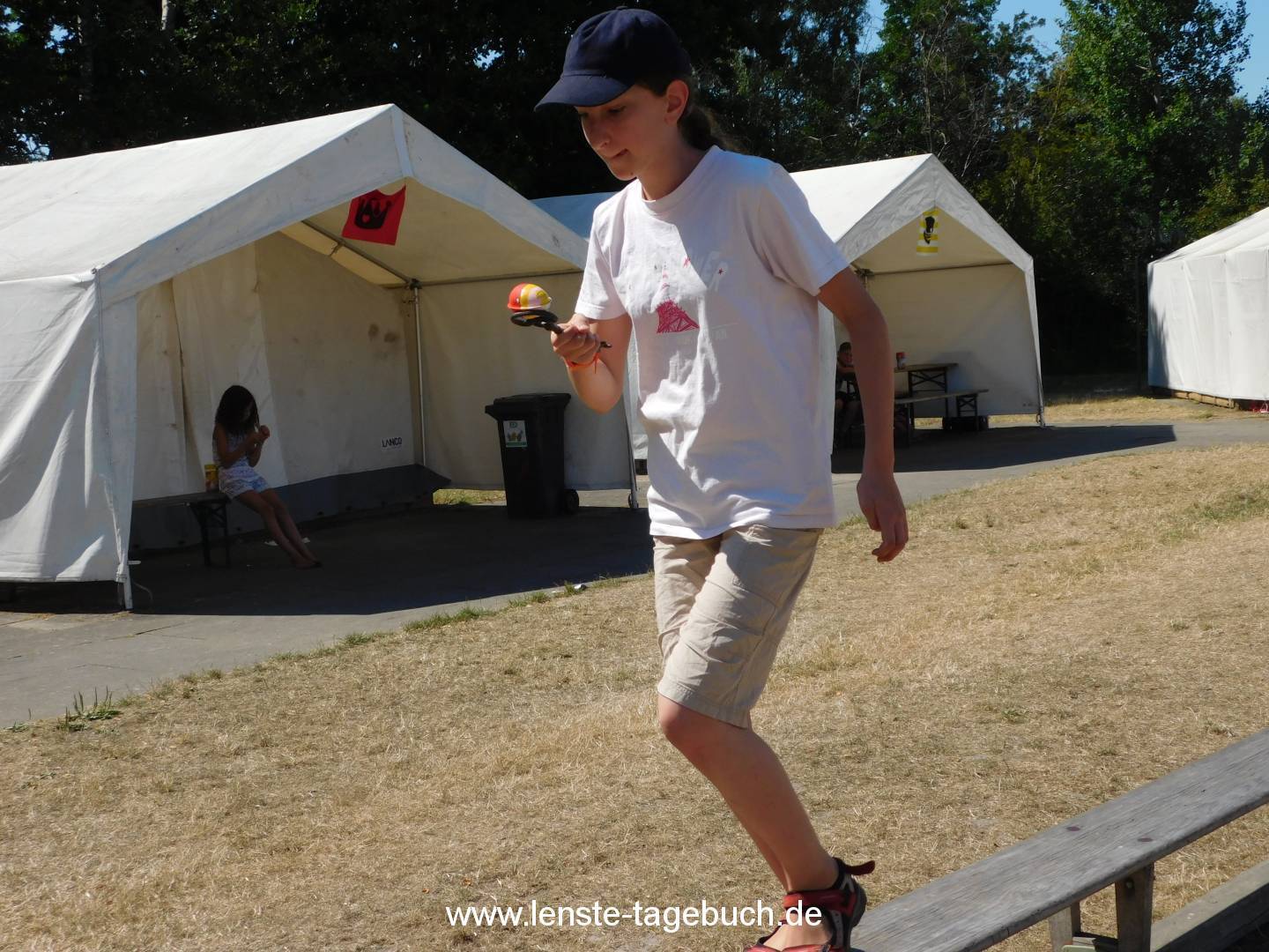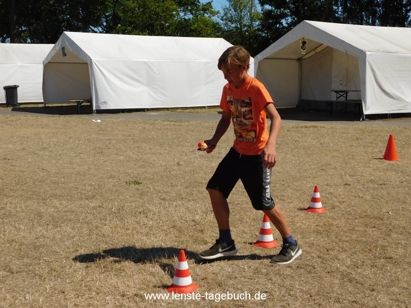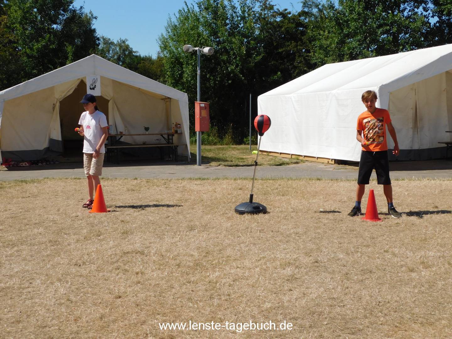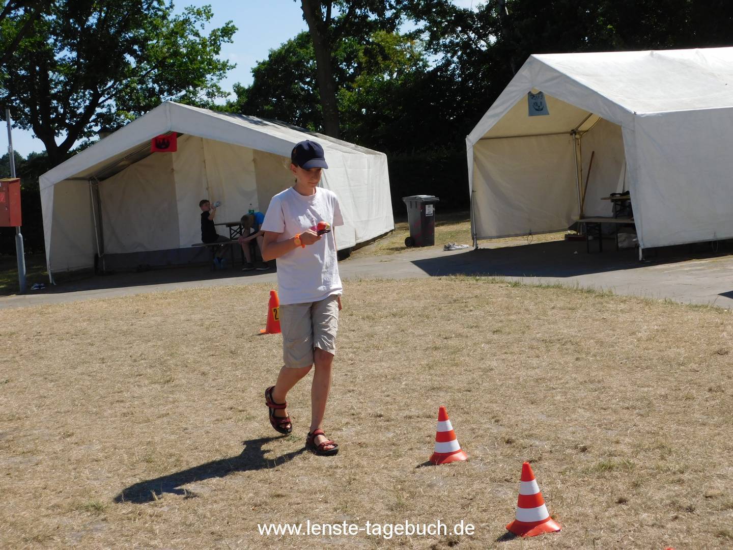 Heute war der Tag des offenen Lagers, das heißt, Familie und Freunde konnten einmal einen Blick in unseren Zeltlageralltag werfen. Dazu fand am Nachmittag unser großer Budenzauber statt. Dieser wurde mit 200 Ballons eröffnet, die genn Himmel stiegen. Die Familien und Kinder konnten Waffeln, Zuckerwatte und Bratwurst essen. Die Kalorien konnten auf der Hüpfburg, Bungeerun oder beim Eierlauf und Torschießen verbrannt werden. Weiter tolle Stationen waren Buttons- und Kartenbasteln, Kinderschminken, Flamingo-Crocket und Wege legen. Bei super Wetter und toller Musik der DJ’s war dies ein wunderbarer Nachmittag. Der Budenzauber wurde abgerundet mit einer Vorstellung eines Zauberers. Anschließend an diese faszinierende Vorstellung konnten die Kinder selber noch einen Zaubertrick erlernen.