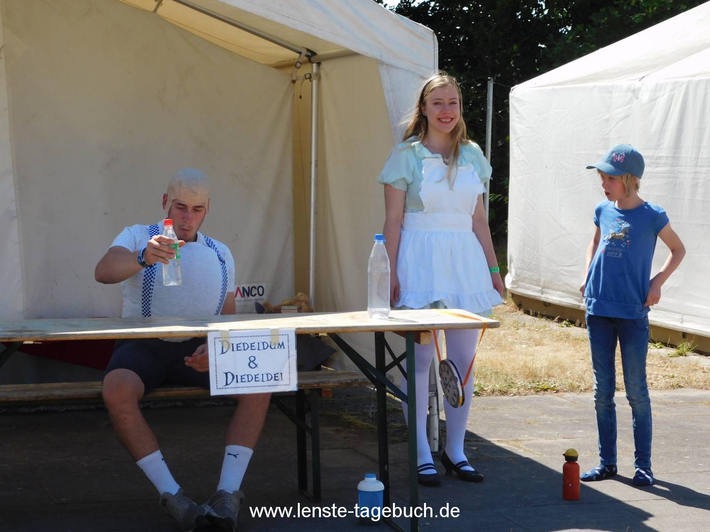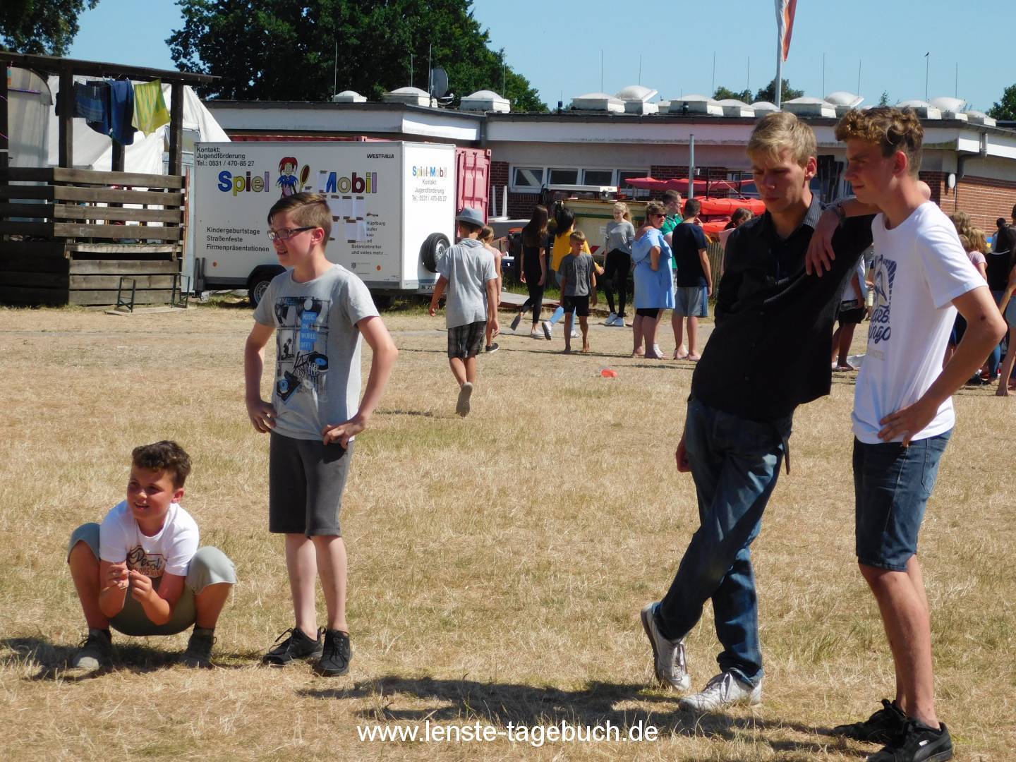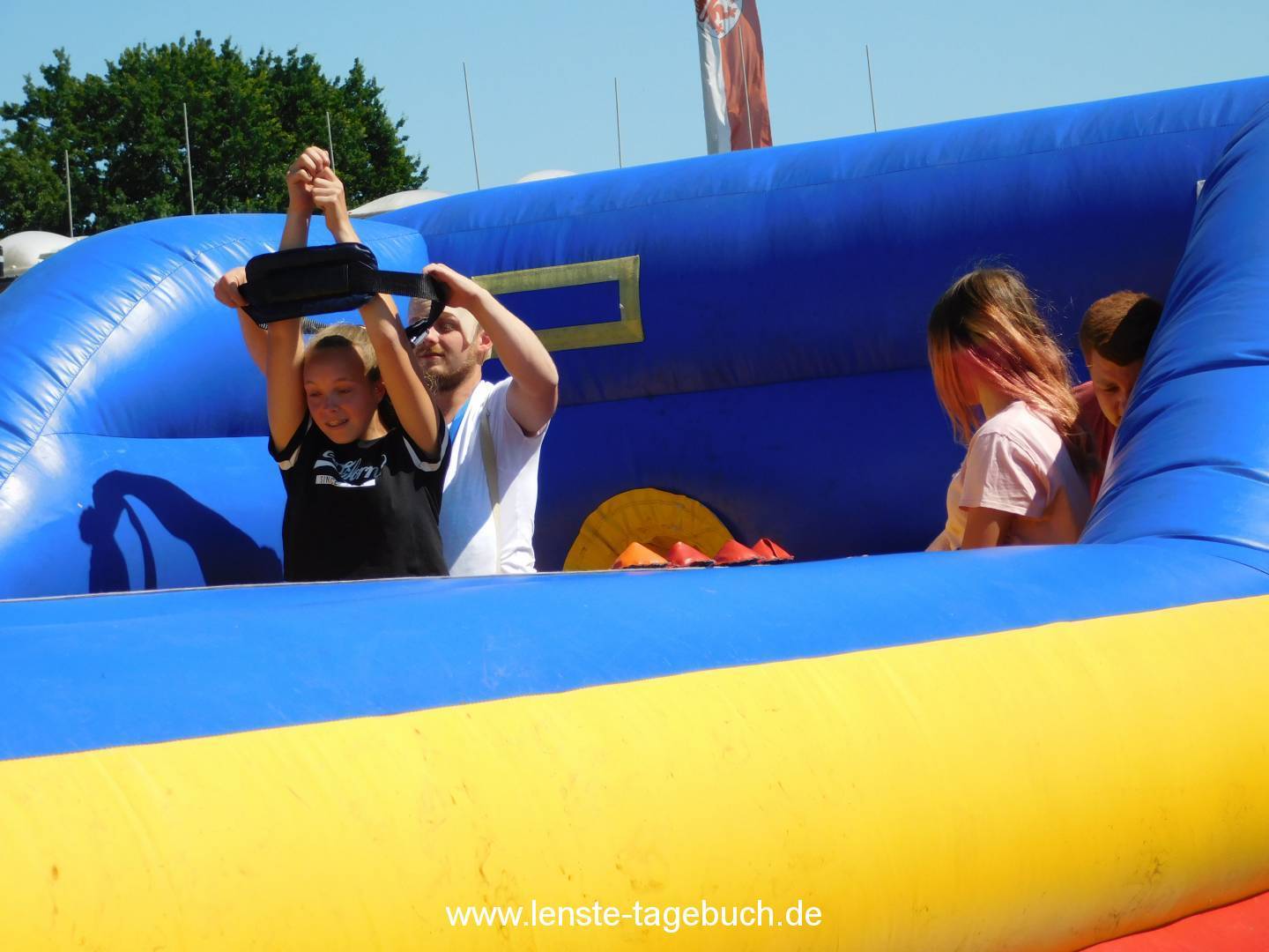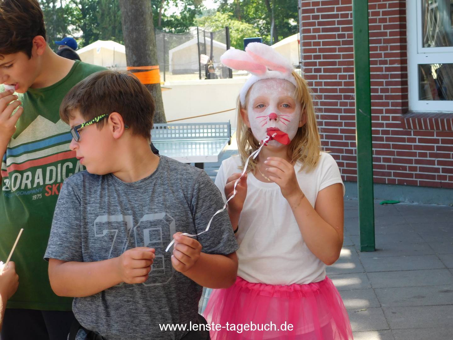 Heute war der Tag des offenen Lagers, das heißt, Familie und Freunde konnten einmal einen Blick in unseren Zeltlageralltag werfen. Dazu fand am Nachmittag unser großer Budenzauber statt. Dieser wurde mit 200 Ballons eröffnet, die genn Himmel stiegen. Die Familien und Kinder konnten Waffeln, Zuckerwatte und Bratwurst essen. Die Kalorien konnten auf der Hüpfburg, Bungeerun oder beim Eierlauf und Torschießen verbrannt werden. Weiter tolle Stationen waren Buttons- und Kartenbasteln, Kinderschminken, Flamingo-Crocket und Wege legen. Bei super Wetter und toller Musik der DJ’s war dies ein wunderbarer Nachmittag. Der Budenzauber wurde abgerundet mit einer Vorstellung eines Zauberers. Anschließend an diese faszinierende Vorstellung konnten die Kinder selber noch einen Zaubertrick erlernen.