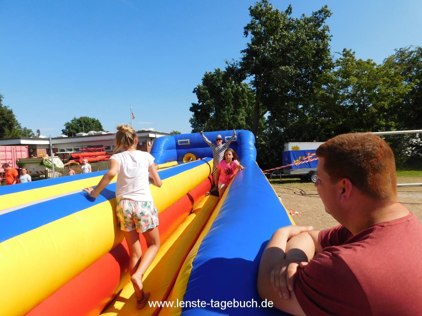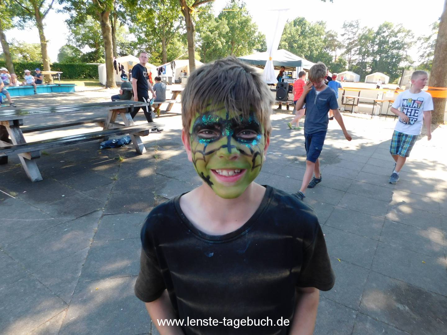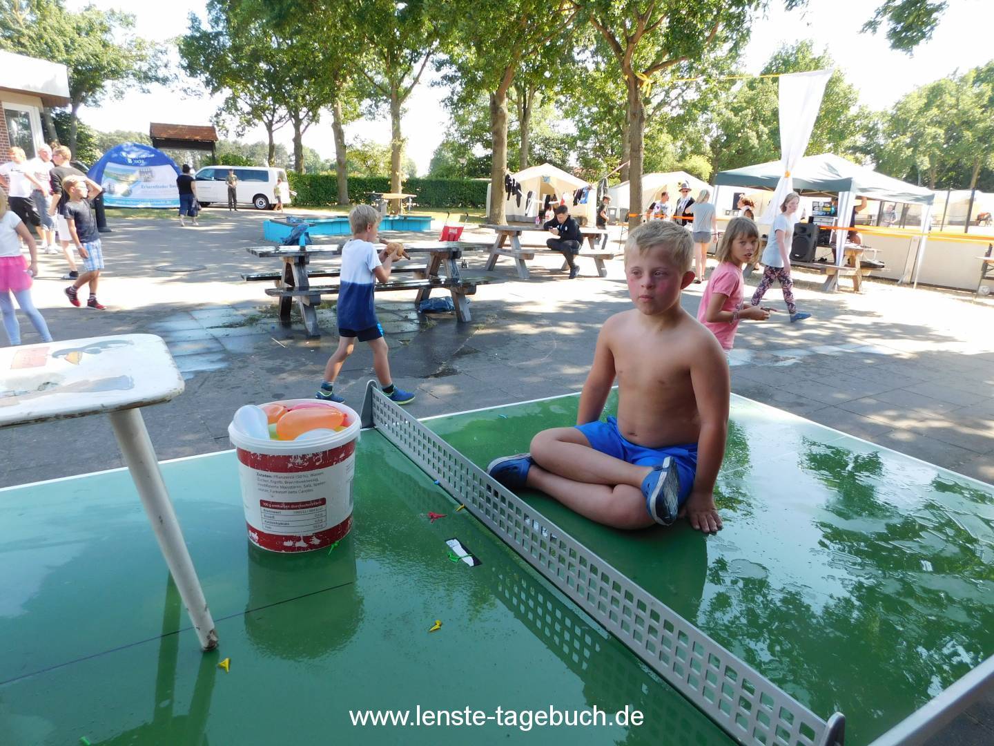 Heute war der Tag des offenen Lagers, das heißt, Familie und Freunde konnten einmal einen Blick in unseren Zeltlageralltag werfen. Dazu fand am Nachmittag unser großer Budenzauber statt. Dieser wurde mit 200 Ballons eröffnet, die genn Himmel stiegen. Die Familien und Kinder konnten Waffeln, Zuckerwatte und Bratwurst essen. Die Kalorien konnten auf der Hüpfburg, Bungeerun oder beim Eierlauf und Torschießen verbrannt werden. Weiter tolle Stationen waren Buttons- und Kartenbasteln, Kinderschminken, Flamingo-Crocket und Wege legen. Bei super Wetter und toller Musik der DJ’s war dies ein wunderbarer Nachmittag. Der Budenzauber wurde abgerundet mit einer Vorstellung eines Zauberers. Anschließend an diese faszinierende Vorstellung konnten die Kinder selber noch einen Zaubertrick erlernen.