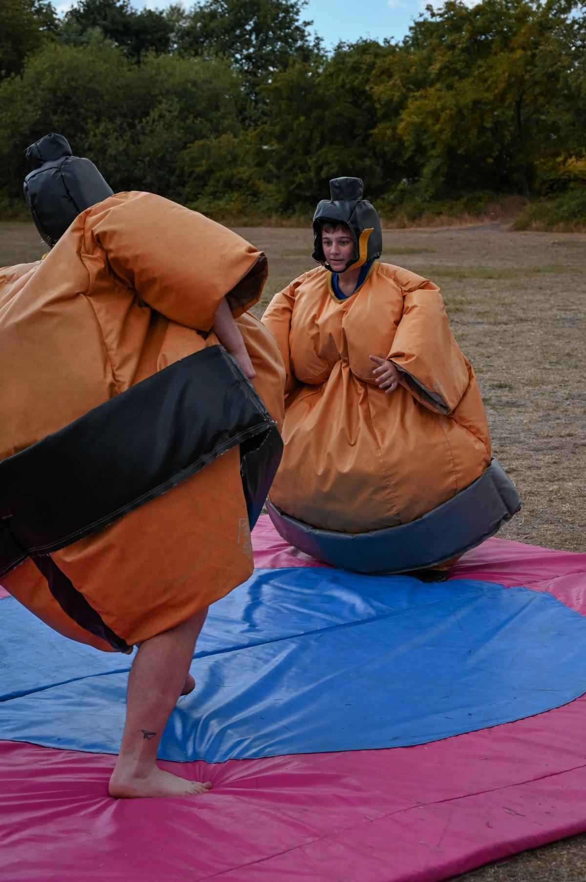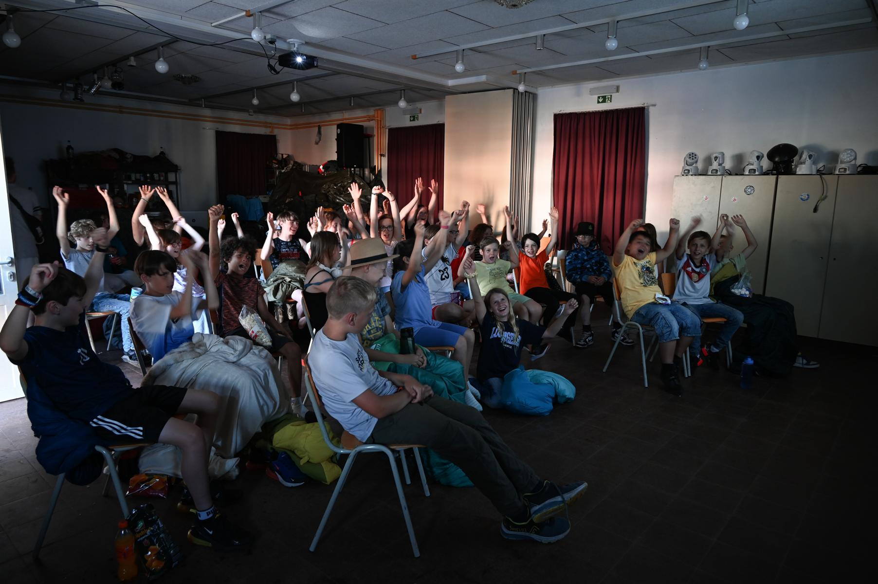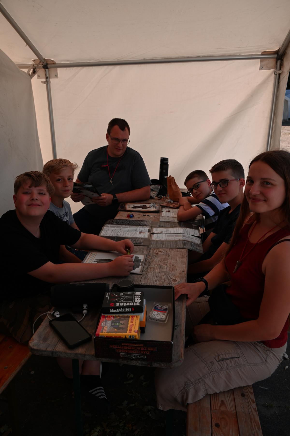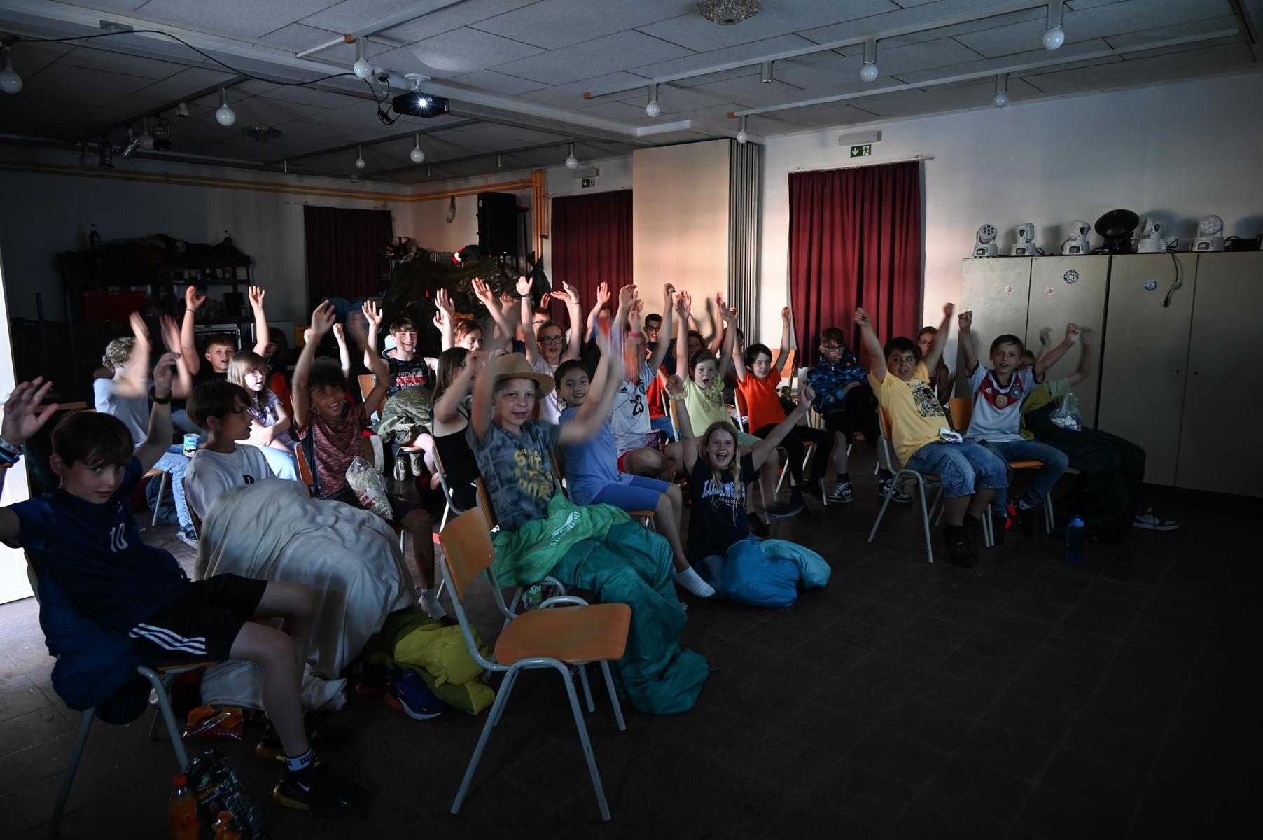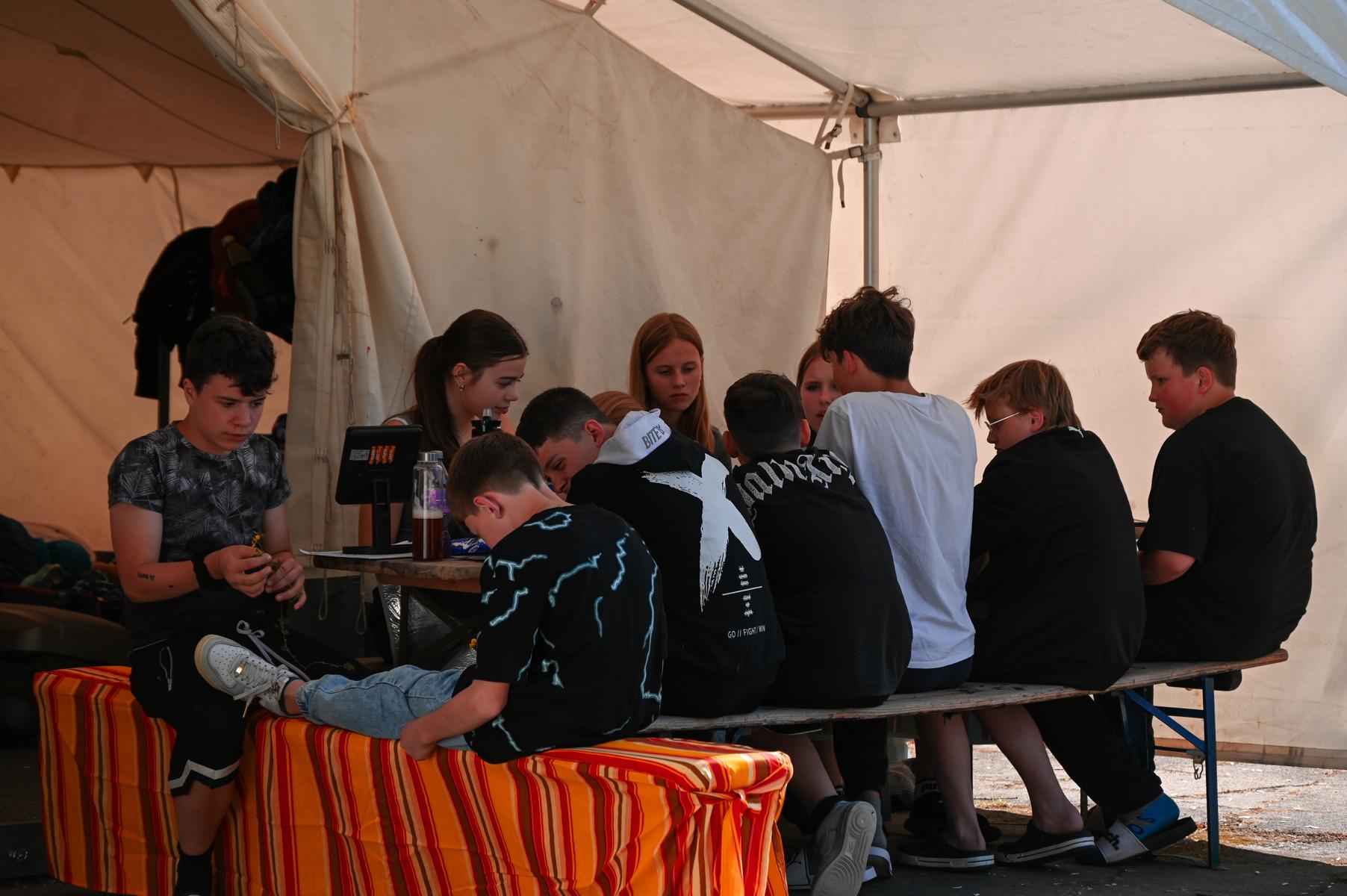 die Kinder haben jetzt bis zum Mittag, wo es Nudeln mit Tomatensoße gab, dem Regen getrotzt. Es reicht jetzt und die Sonne soll scheinen. Sie werden Sumo ringen und Bungee-Run ausbauen. Ich möchte wieder fröhliches Lachen hören bis nach dem Abendbrot zwei spannende Filme gezeigt werden.