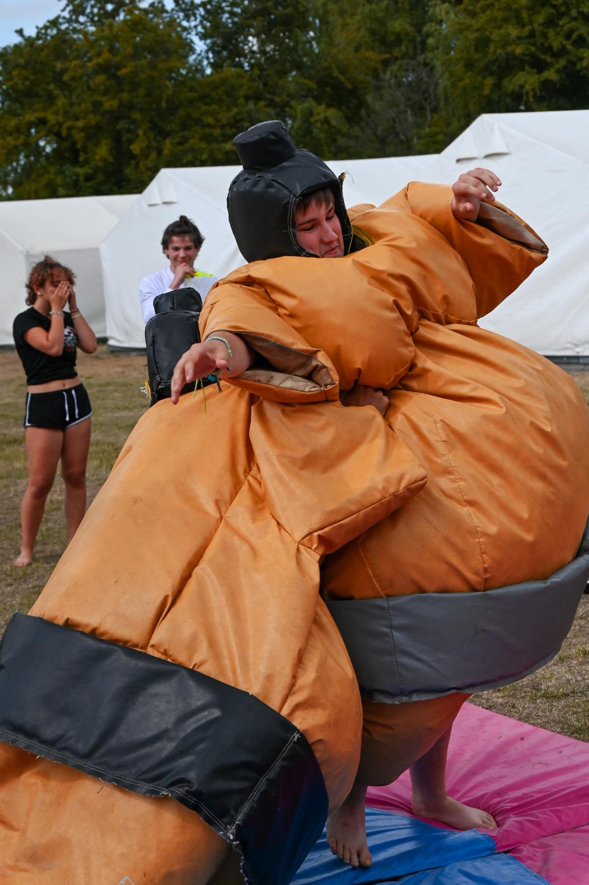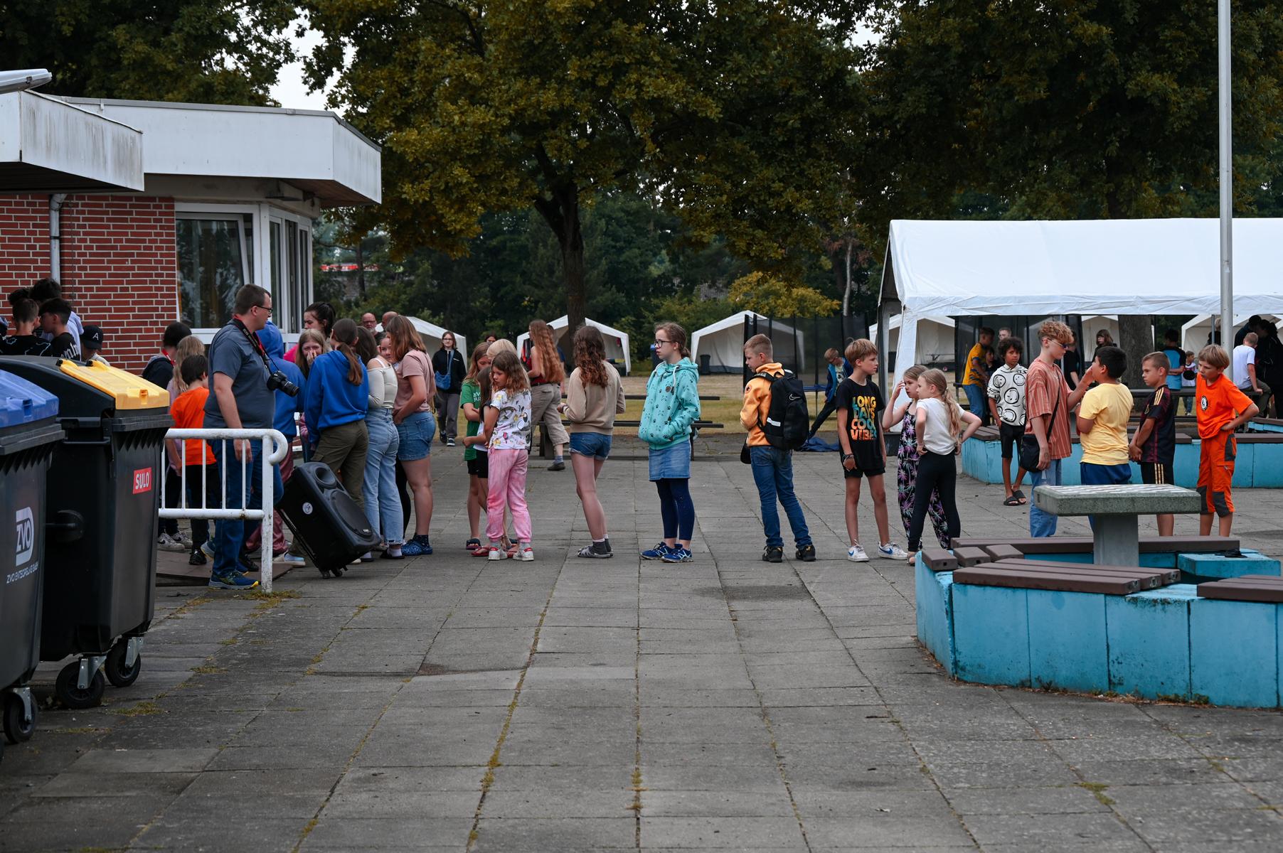 die Kinder haben jetzt bis zum Mittag, wo es Nudeln mit Tomatensoße gab, dem Regen getrotzt. Es reicht jetzt und die Sonne soll scheinen. Sie werden Sumo ringen und Bungee-Run ausbauen. Ich möchte wieder fröhliches Lachen hören bis nach dem Abendbrot zwei spannende Filme gezeigt werden.