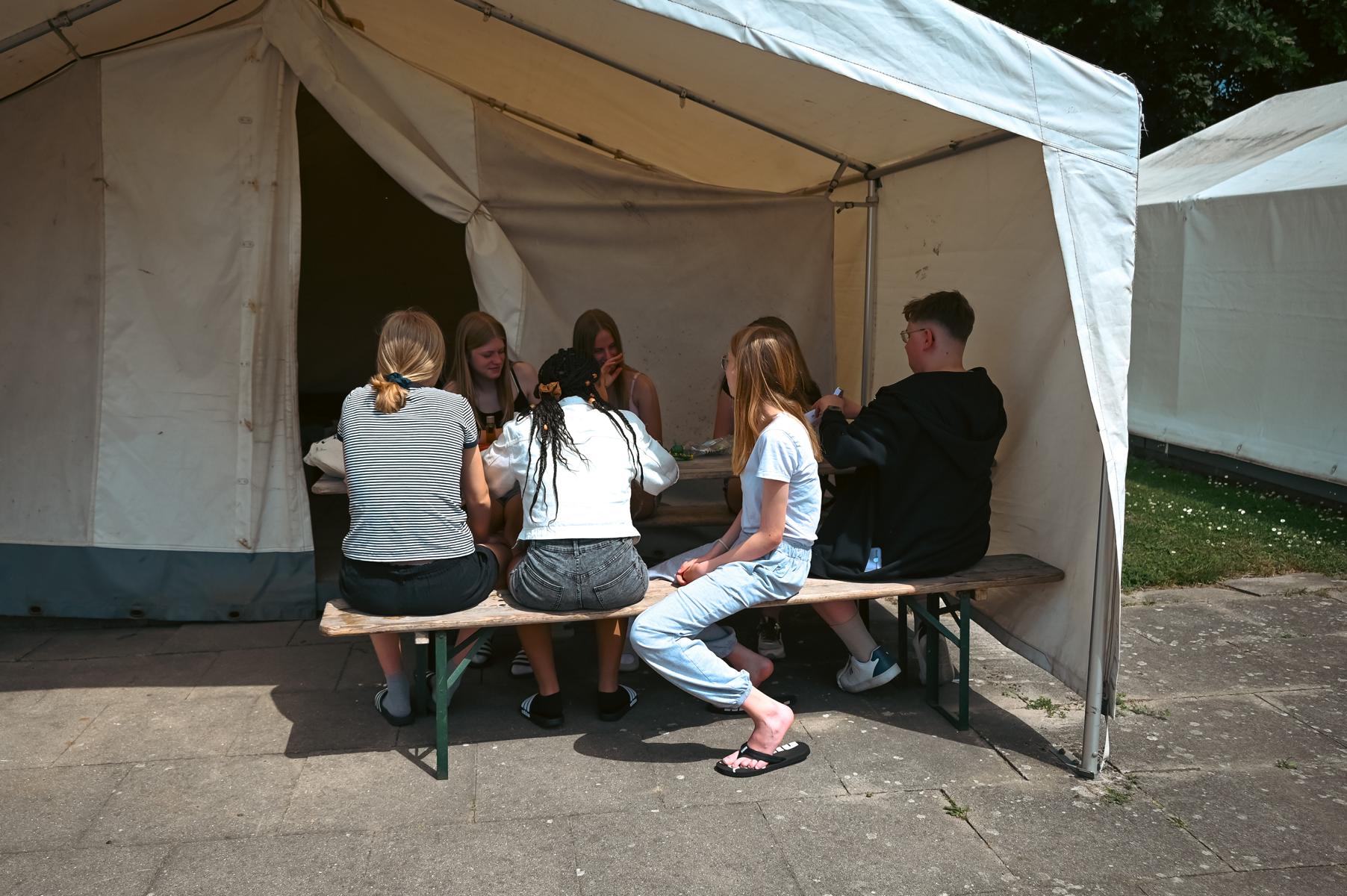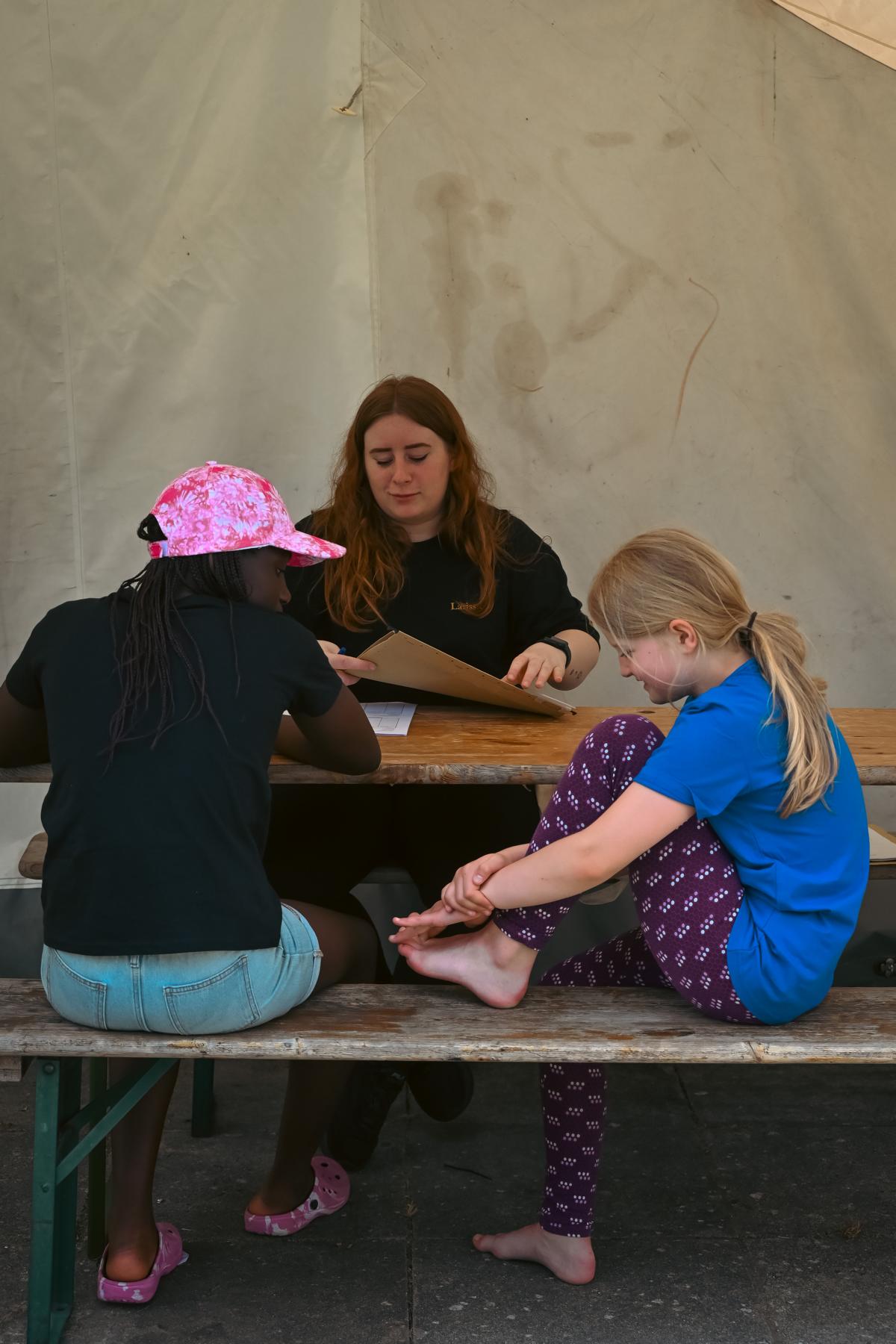 Pünktlich um 8.00 Uhr brechen junge Hexen und Zauberer zum Zauberzeltlager Lenste auf. Mit den Hogwarts-Expressbussen ging es bepackt mit Zauberstäben, Umhängen und jeder Menge Vorfreude vom Thüringenplatz 9¾ los. Vom sprechenden Hut begleitet führte die Fahrt Richtung Zeltplatz und Mittagessen. Aufgetischt wurde ein magischer Kartoffelsalat, der nicht nur mit Würstchen, sondern auch mit vegetarischen Bouletten die Geschmacksnerven verzauberte. Frisch gestärkt ging es am Nachmittag ans Werk. Zelte wurden bezogen, Koffer verstaut und der Zeltplatz erkundet. Der erste Tag des Zeltlagers stand ganz im Zeichen der Vorbereitung auf die kommenden Abenteuer. Hierfür durfte natürlich auch die Einteilung in die vier Häuser Gryffindor, Ravenclaw, Slytherin und Hufflepuff durch die Hauslehrer nicht fehlen. Mit dem Wissen, dass dies erst der Anfang einer aufregenden Zeit voller Magie und Überraschungen ist, gingen die jungen Hexen und Zauberer voller Vorfreude nach der ersten Disco zu Bett.